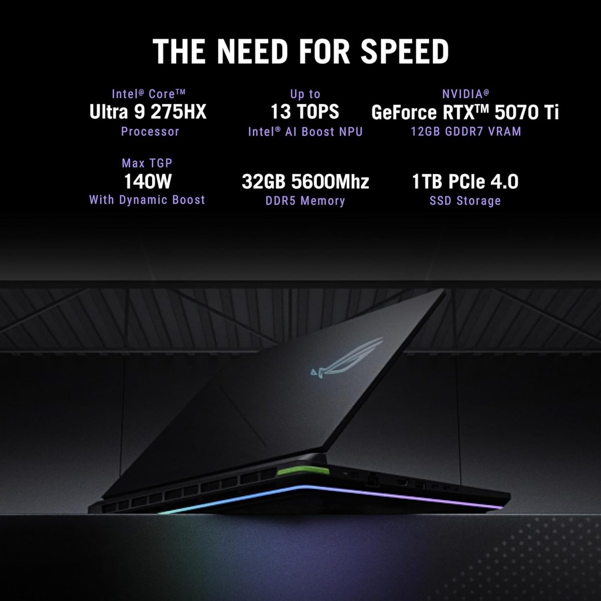 ASUS ROG Strix G16,Intel Core Ultra 9 275HX Gaming Laptop(RTX 5070 Ti -12GB/140W TGP/32GB/1TB/2.5K QHD+/16″/240Hz/Windows 11/M365 Basic (1Year)*/Office Home 2024/Eclipse Gray/2.65 Kg) G615LR-S5190WS