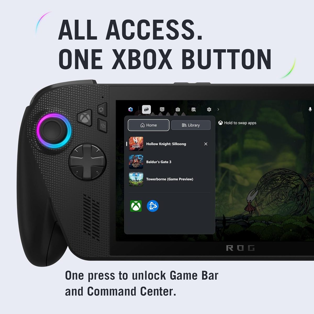 XBOX GAME BAR INTEGRATION Launch Game Bar with a tap of the Xbox button or play your favorite titles natively from platforms like Xbox Game Pass, Steam, Epic Games, or Windows games on the go.