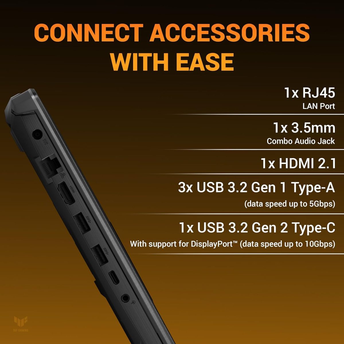 ASUS TUF A15, AMD Ryzen 7 7445HS, Gaming Laptop(RTX 3050-4GB/75W TGP/32GB RAM/1TB SSD/FHD/15.6″/144Hz/Backlit Keyboard/48Whrs/Windows 11/Graphite Black/2.3 Kg) FA506NCG-HN250W