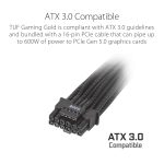Capacitors and chokes pass demanding tests to achieve Military-grade Certification. Dual ball fan bearings can last up to twice as long as sleeve bearing designs. A protective PCB coating protects against moisture, dust, and extreme temperatures. An 80 Plus Gold Certification is the result of Japanese capacitors and other premium components.. ATX 3.0 Compatible: TUF Gaming Gold is compliant with ATX 3.0 guidelines and bundled with a 16-pin PCIe cable that can pipe up to 600W of power to PCIe Gen 5.0 graphics cards. Axial-tech fan design features a smaller fan hub that facilitates longer blades and a barrier ring that increases downward air pressure. Fully modular etched cables keep your rig neat and tidy.