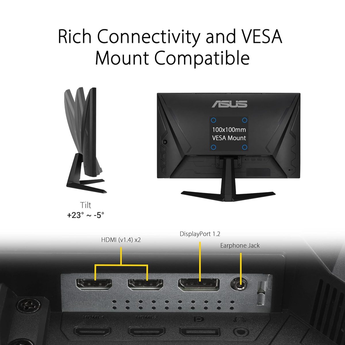 ASUS TUF Gaming 23.8 inch 1080P Monitor (VG247Q1A) – Full HD, 165Hz (Supports 144Hz), 1ms, Extreme Low Motion Blur, Adaptive-sync, FreeSync Premium, Shadow Boost, Speakers, Eye Care, HDMI, DisplayPort