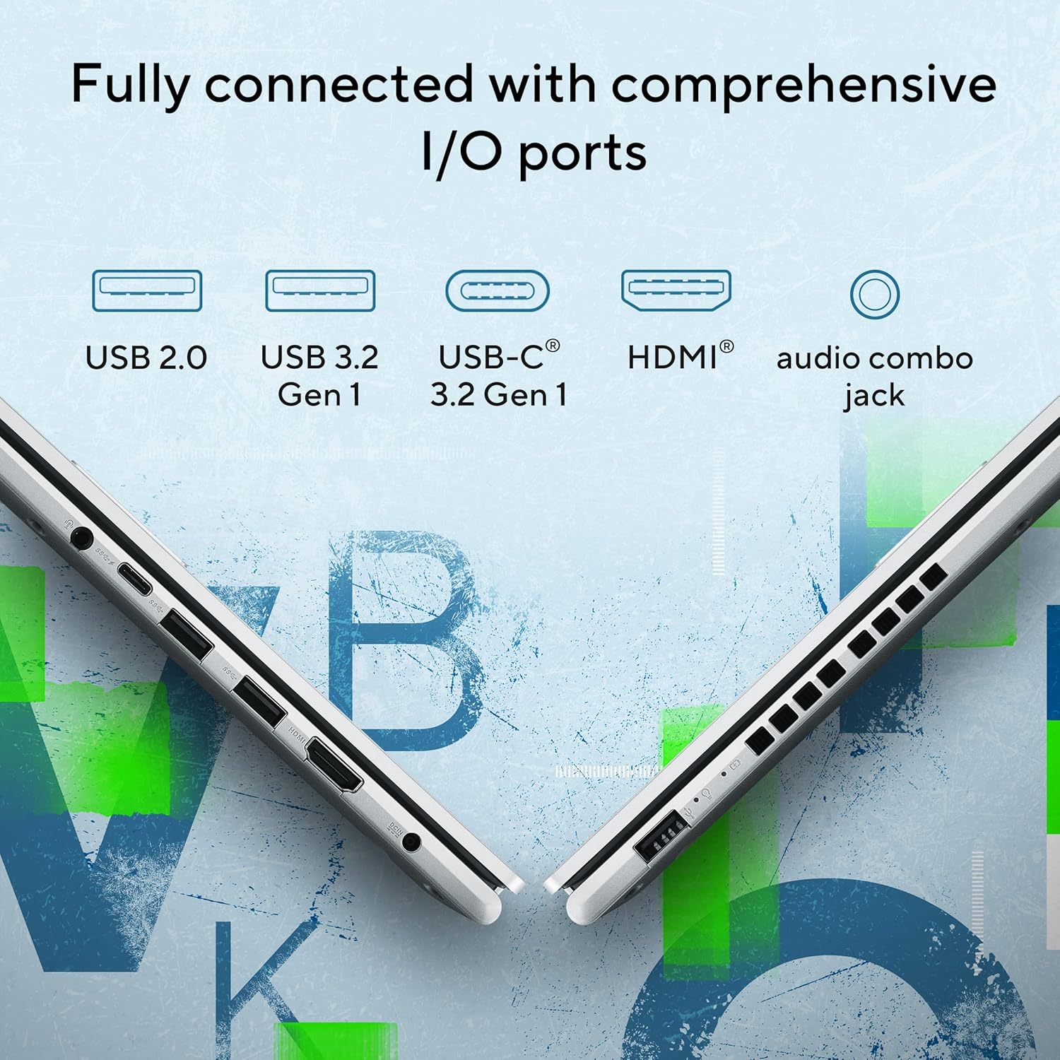 Processor : Intel Core i5-13420H Processor 2.1 GHz (12MB Cache, up to 4.6 GHz, 8 cores, 12 Threads) Display : 15.6-inch, FHD (1920 x 1080) 16:9 aspect ratio, 60Hz refresh rate, 250nits Brightness Memory : DDR4 16GB RAM, 512GB M.2 NVMe PCIe 4.0 SSD Graphics : Intergrated Intel UHD Graphics | Battery : 42WHrs, 3S1P, 3-cell Li-ion Software : Microsoft 365 Basic with 100GB Cloud Storage for 1 Year + Office Home 2024 with lifetime validity I/O Ports : 1x USB 2.0 Type-A (data speed up to 480Mbps), 1x USB 3.2 Gen 1 Type-C with support for power delivery (data speed up to 5Gbps), 2x USB 3.2 Gen 1 Type-A (data speed up to 5Gbps), 1x HDMI 1.4, 1x 3.5mm Combo Audio Jack, 1x DC-in I/O Ports : 1x USB 2.0 Type-A (data speed up to 480Mbps), 1x USB 3.2 Gen 1 Type-C with support for power delivery (data speed up to 5Gbps), 2x USB 3.2 Gen 1 Type-A (data speed up to 5Gbps), 1x HDMI 1.4, 1x 3.5mm Combo Audio Jack, 1x DC-in Web Cam : 720p HD camera ; With privacy shutter, Mic : Built-in microphone, Audio : Built-in speaker