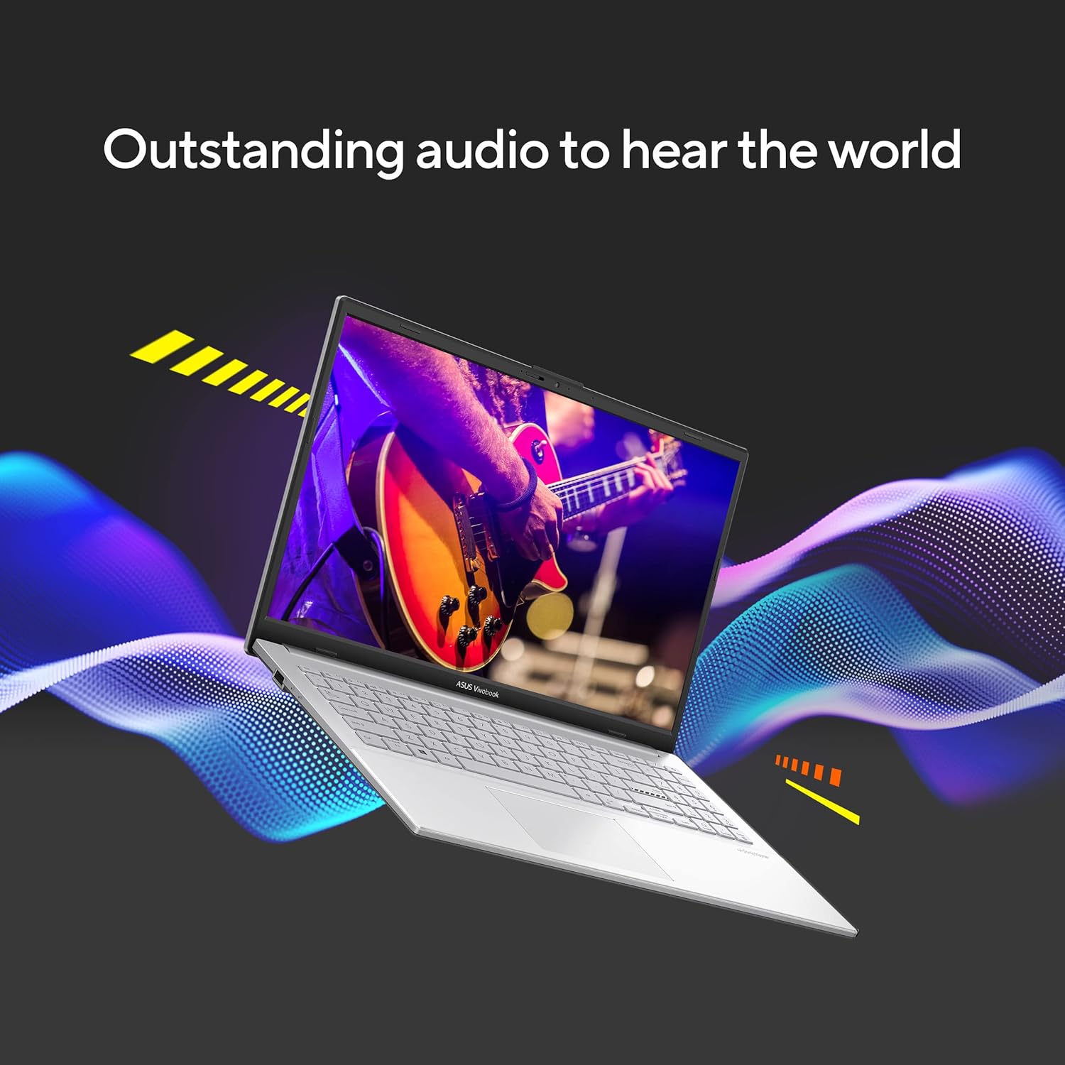 Vivobook Go 15 provides incredibly powerful, crystal-clear sound with ASUS SonicMaster and DTS Audio Processing. The combination of hardware and software boost the volume, and remove noise to improve audio clarity so you get truly immersive sound.