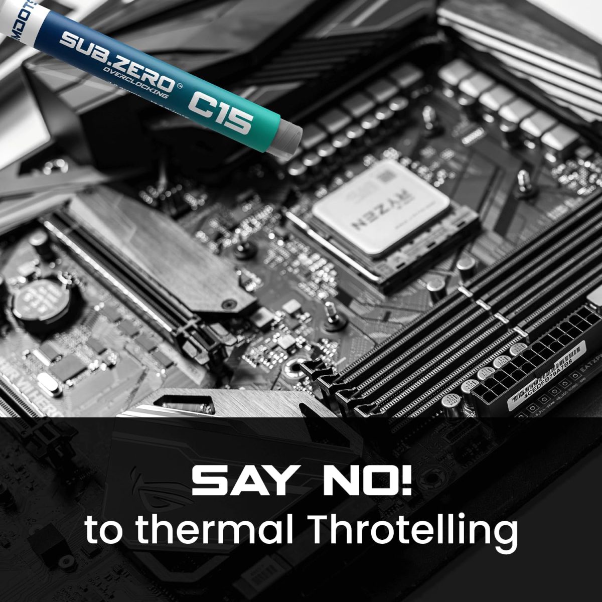 C15 is crafted specifically for the overclocking community. This premium thermal paste is tailored for PC enthusiasts seeking optimal performance from high-powered CPUs and GPUs that generate substantial heat. With exceptional thermal conductivity boasting 14.6 W/m*k and a peak operating temperature of 250 degrees Celsius, designed for both CPUs and GPUs, Sub.zero Overclocking C15 is the ultimate choice for those looking to push their hardware to the limits. Sub.zero Overclocking C15 is an ultra-high-performance thermal paste featuring an impressive thermal conductivity of 14.6 W/m*k, making it especially suitable for low-temperature cooling methods like nitrogen or compressor cooling. The fine base particles of C15 Thermal Paste minimize the risk of temperature-related issues, reducing the likelihood of nitrogen cooling cracking and maintaining optimal thermal conductivity.