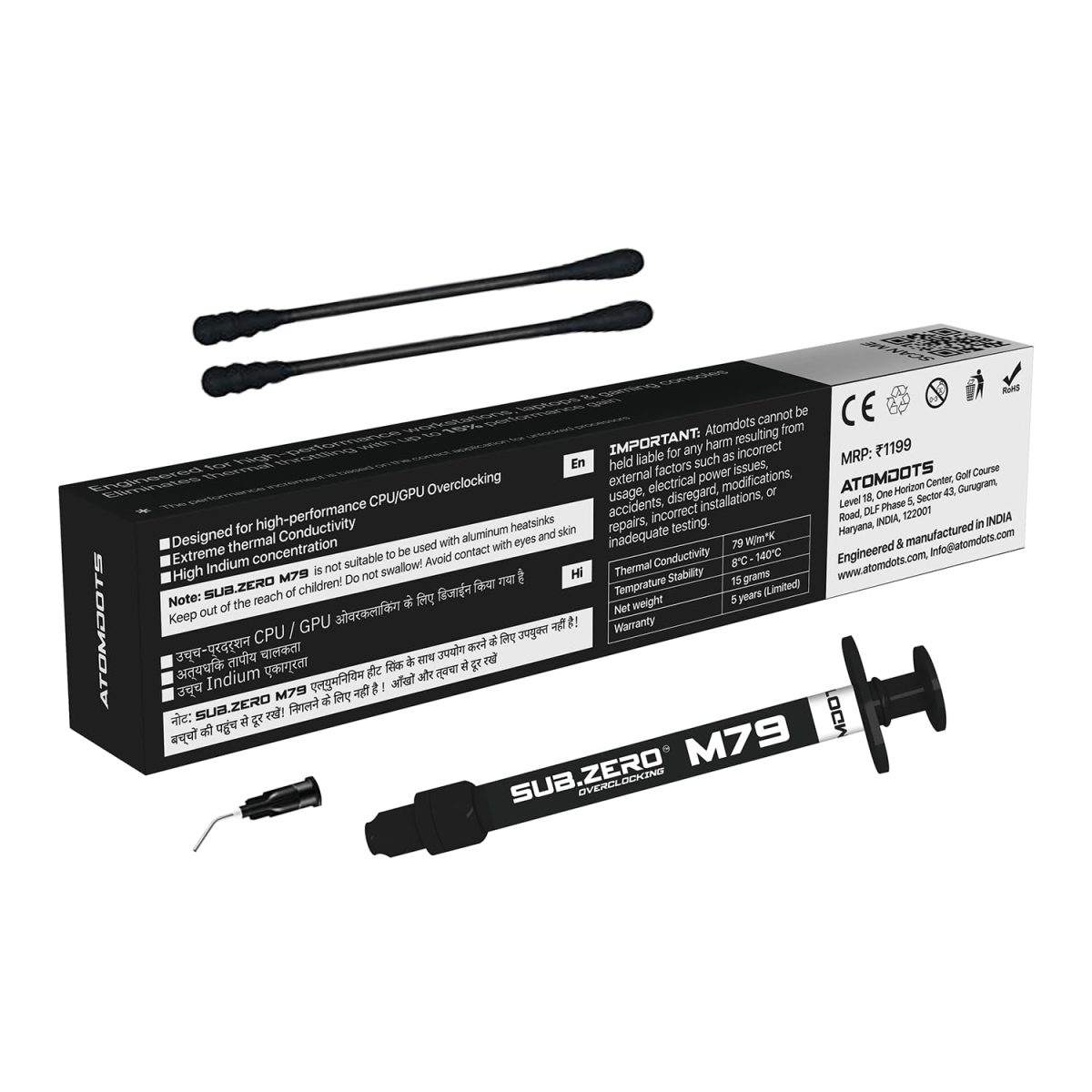 ATOMDOTS M79 – Liquid Metal Thermal Interface Material (Tim) | 79 W/m*K | Subzero Overclocking™ – (1.0 Gram) for Maximum Thermal Conductivity All Coolers-While Overclocking CPU/GPU/PS4/PS5/Xbox