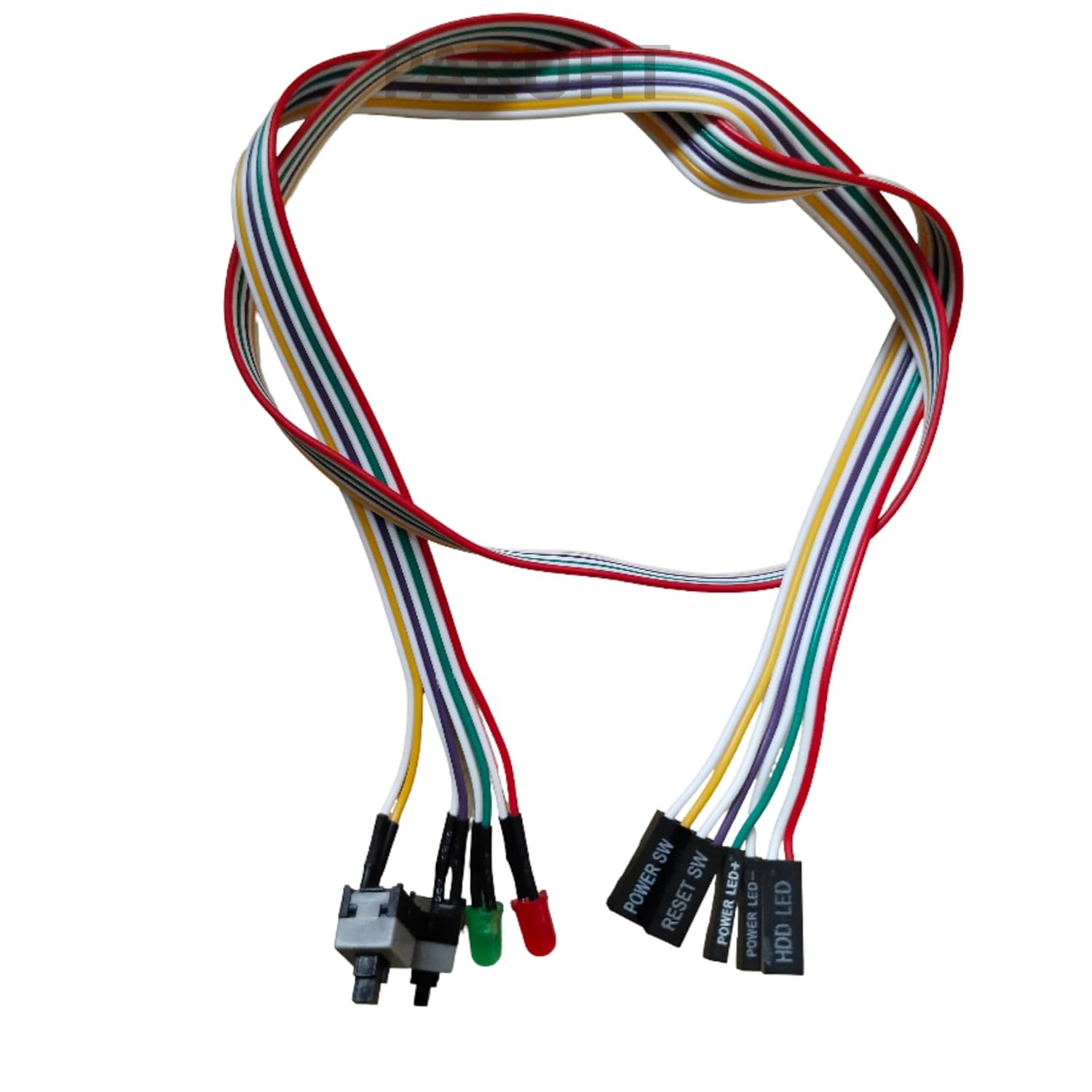 Complete ATX Power & Reset Switch Cable Kit – Includes clearly labeled connectors: Power Switch, Reset Switch, Power LED (+/-), and HDD LED for easy installation on most ATX desktop motherboards.