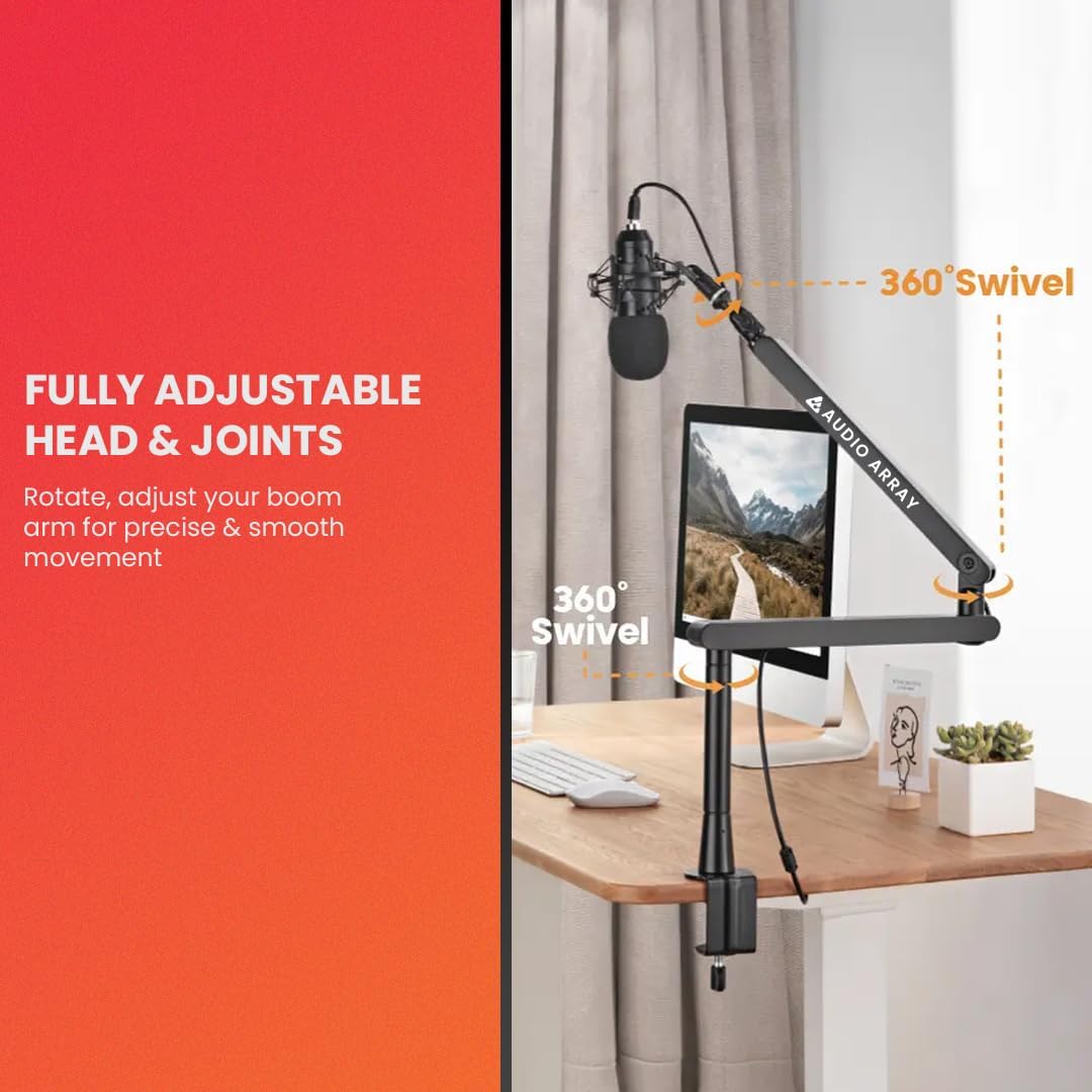 🎤 [FLEXIBILITY ADJUSTMENT]: – 71cm vertical and horizontal range of motion and 360° full rotation to obtain the best sound pickup. 3 Pivot joints provide height and angle adjustment to desired position.