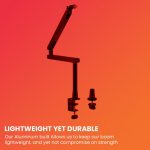 🎤 [HEAVY DUTY CONSTRUCTION]: – Made of durable steel, plastic and aluminium providing outstanding weight bearing capacity & precision-engineered such that arm stays firmly at any position and no drop nor bounce back & no squeaking sound. Max Load Capacity: 2 Kg
