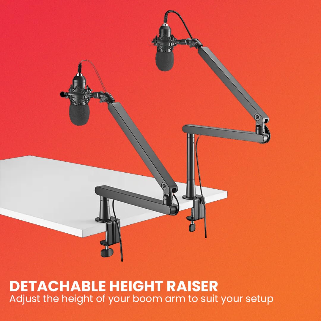 🎤 [WIDE COMPATIBILITY]: This microphone boom arm is compatible with most of the dynamic and condenser microphones except – Microphones having in-built tripod.