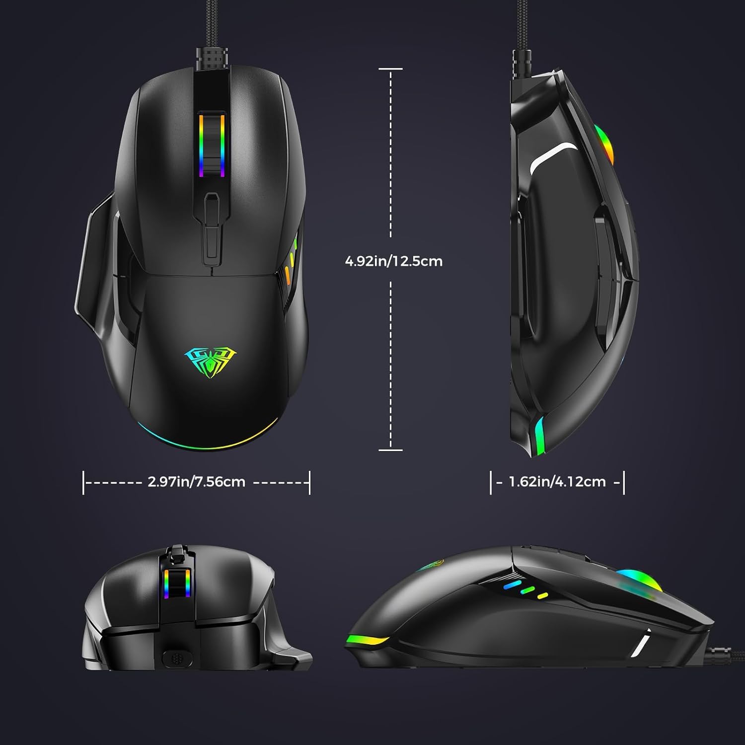 Customize Gaming Atmosphere: RGB Mouse has 13 dynamic backlighting modes, you can adjust color and speed, and turn off or change a single color. Turn the backlight on to create a cool gaming atmosphere and show off your skills on the battlefield, AULA Mouse for Gaming will never let you down