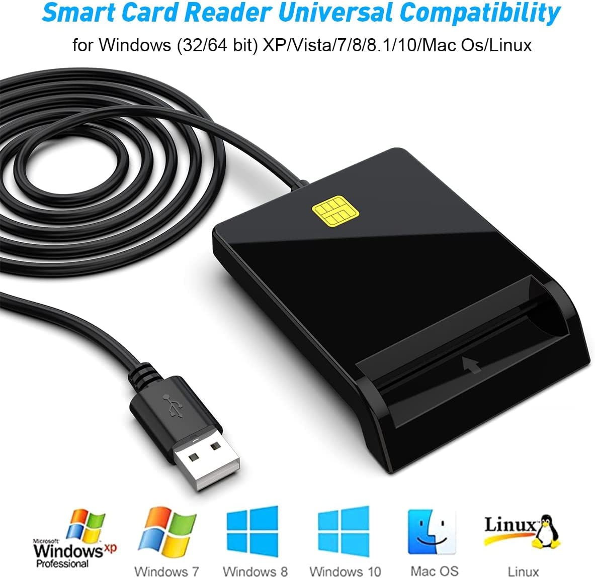 Azonee Smart Card Reader USB for Bank, SIM, Chip, IC, CAC Cards – Plug & Play Compatible With Windows, Linux, Mac OS 10.5 and Above