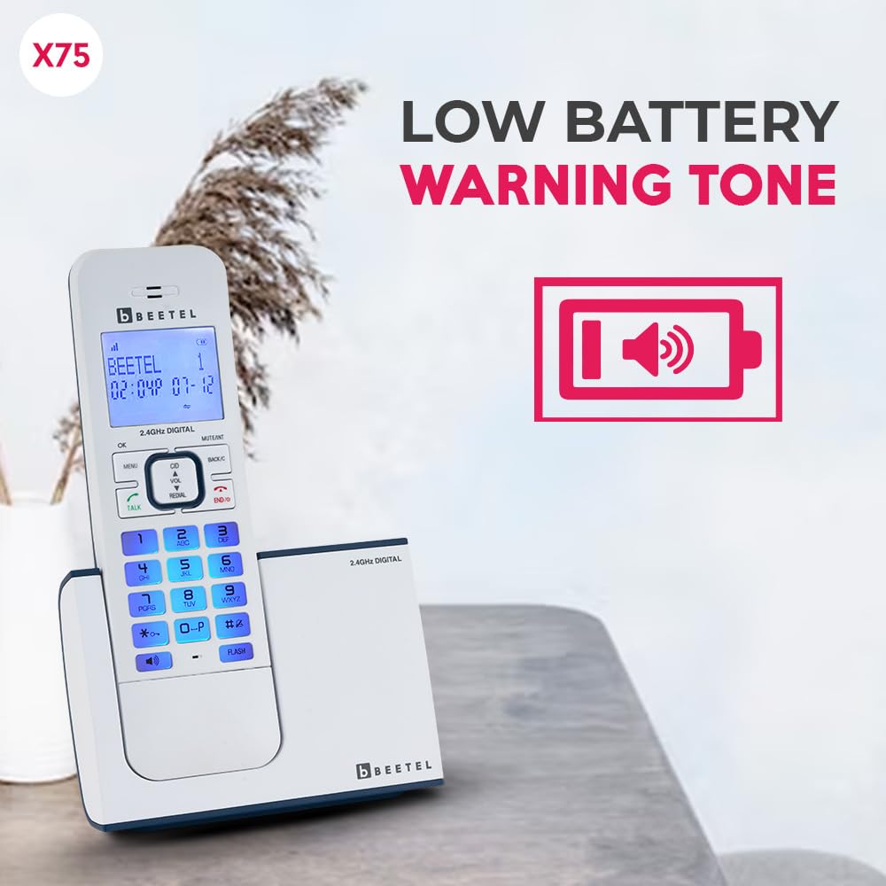 Beetel X75 is a cordless landline phone that combines style and functionality with the latest in digital technology. Equipped with 2.5 GHz digital technology, this phone provides crystal clear sound quality and reliable connectivity. The LCD display with backlit keypad ensures easy navigation, even in low light conditions. The phone comes with a rechargeable battery, providing the convenience of cordless communication without the hassle of changing batteries. Additionally, the dual mode DTMF allows you to switch between pulse and tone dialing modes, making it compatible with any network. With its sleek design and advanced features, the Beetel X75 is the perfect for dependable cordless landline phone.