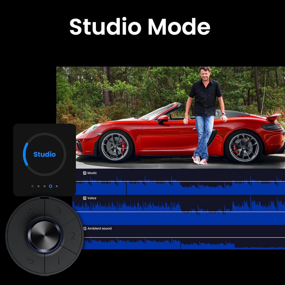 2.1CH AUDIO WITH STUDIO MODE: Built-in speakers with a dedicated woofer deliver balanced, crystal-clear audio. Hear voice, music, and effects as your audience would.