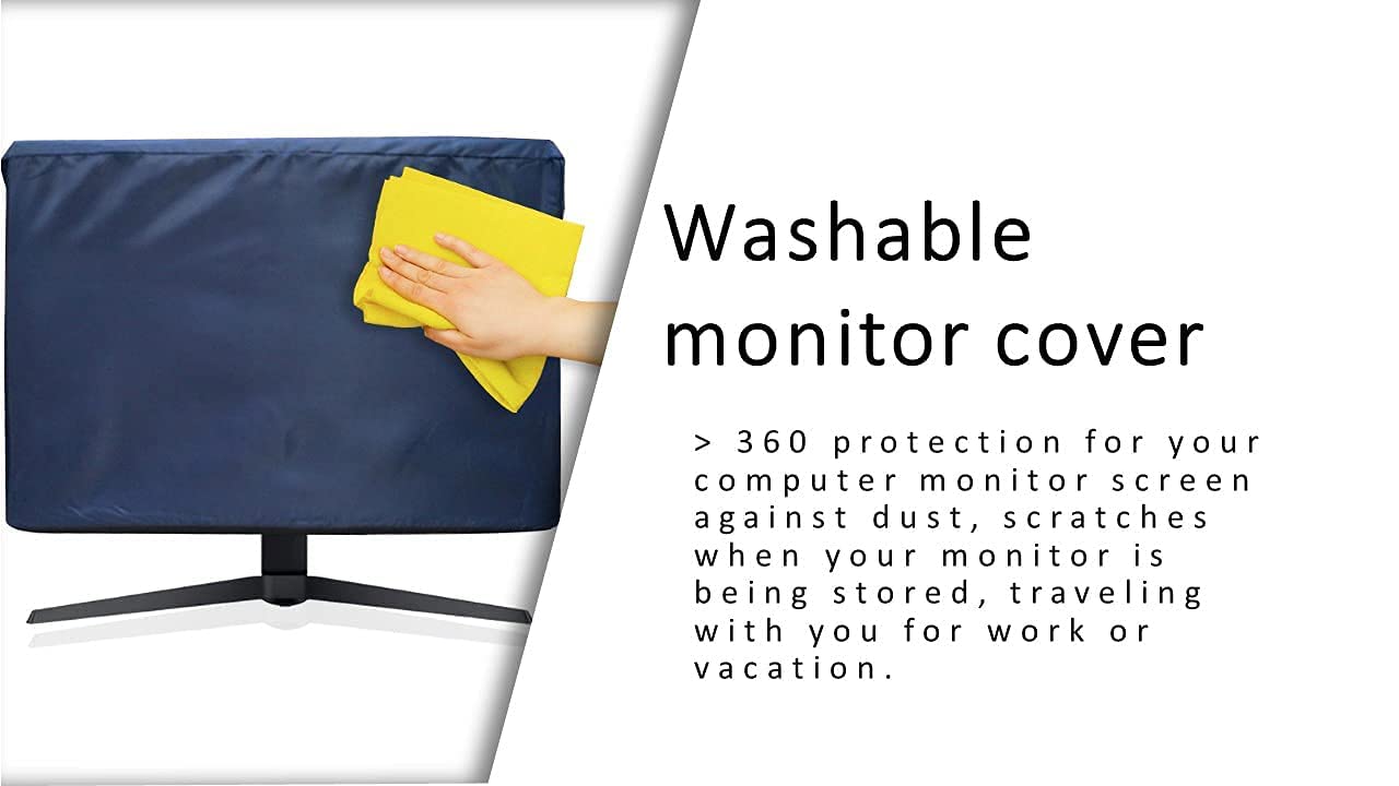 WATERPROOF & DUSTPROOF:TOPPINGS waterproof monitor cover is made of durable nylon with pvc water proof lining to protect your computer desktop screen.