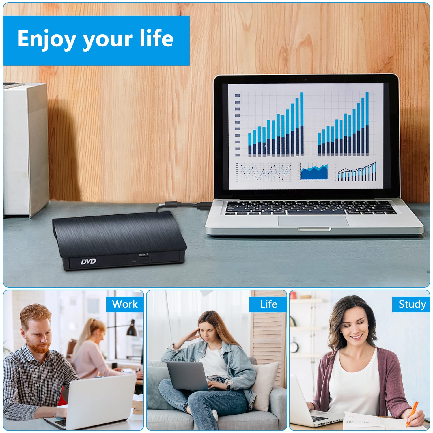 Multifunctional: Watch movies / burn music & videos (CD-R/RW, DVD-R), software & games / install data backup and files / presentations etc. Copy Also with both USB 3.0 and Type C interface, which is suitable for computers with USB 3.0 or Type C, which means it is suitable for most computers, laptops.