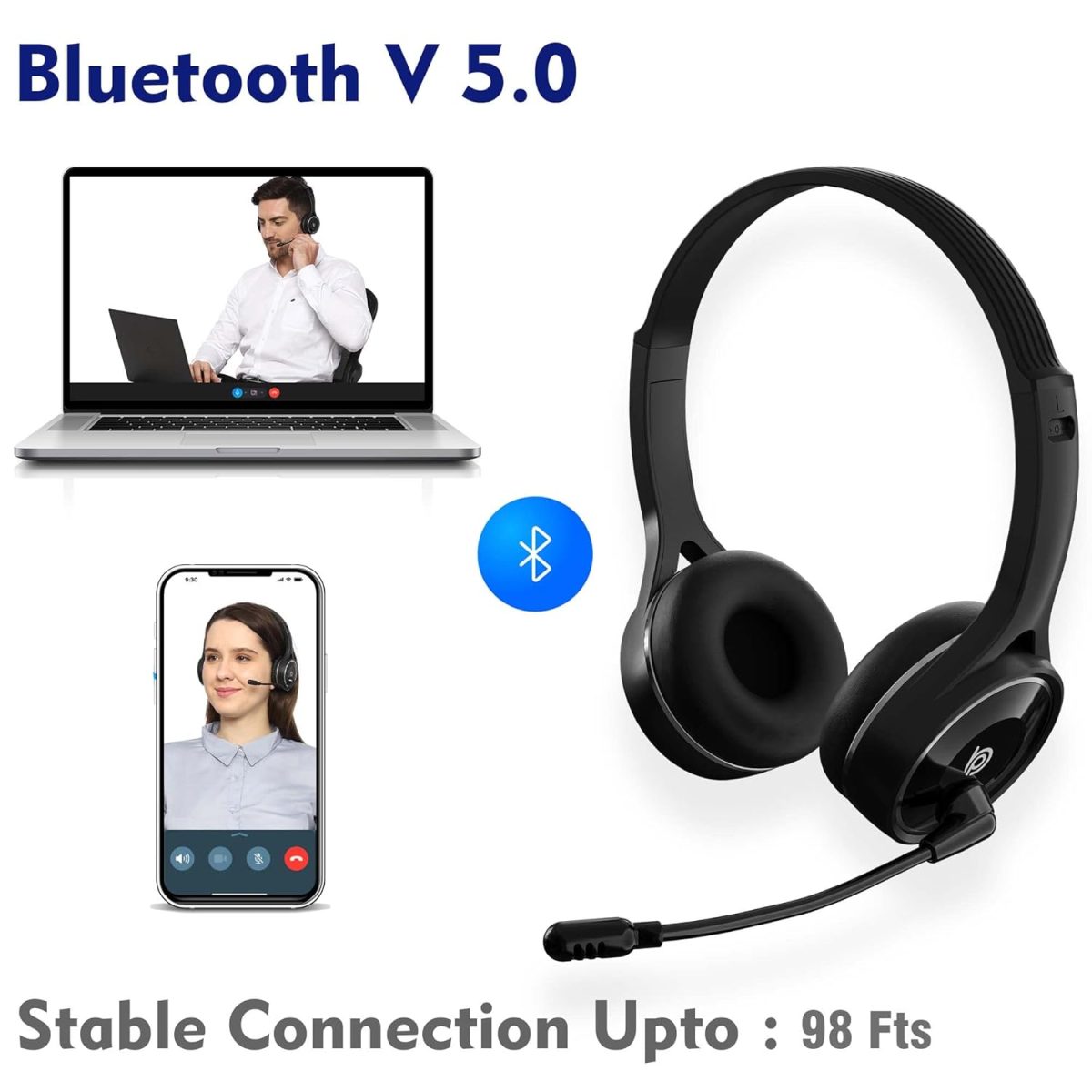 BLUETOOTH HANDS FREE: Powered with Bluetooth 5.0, enjoy wireless hands-free calling experience with computer, laptop or mobile phone. Stable Bluetooth connection up to 98 fts. Light weight only 120 gm for all day comfort.
