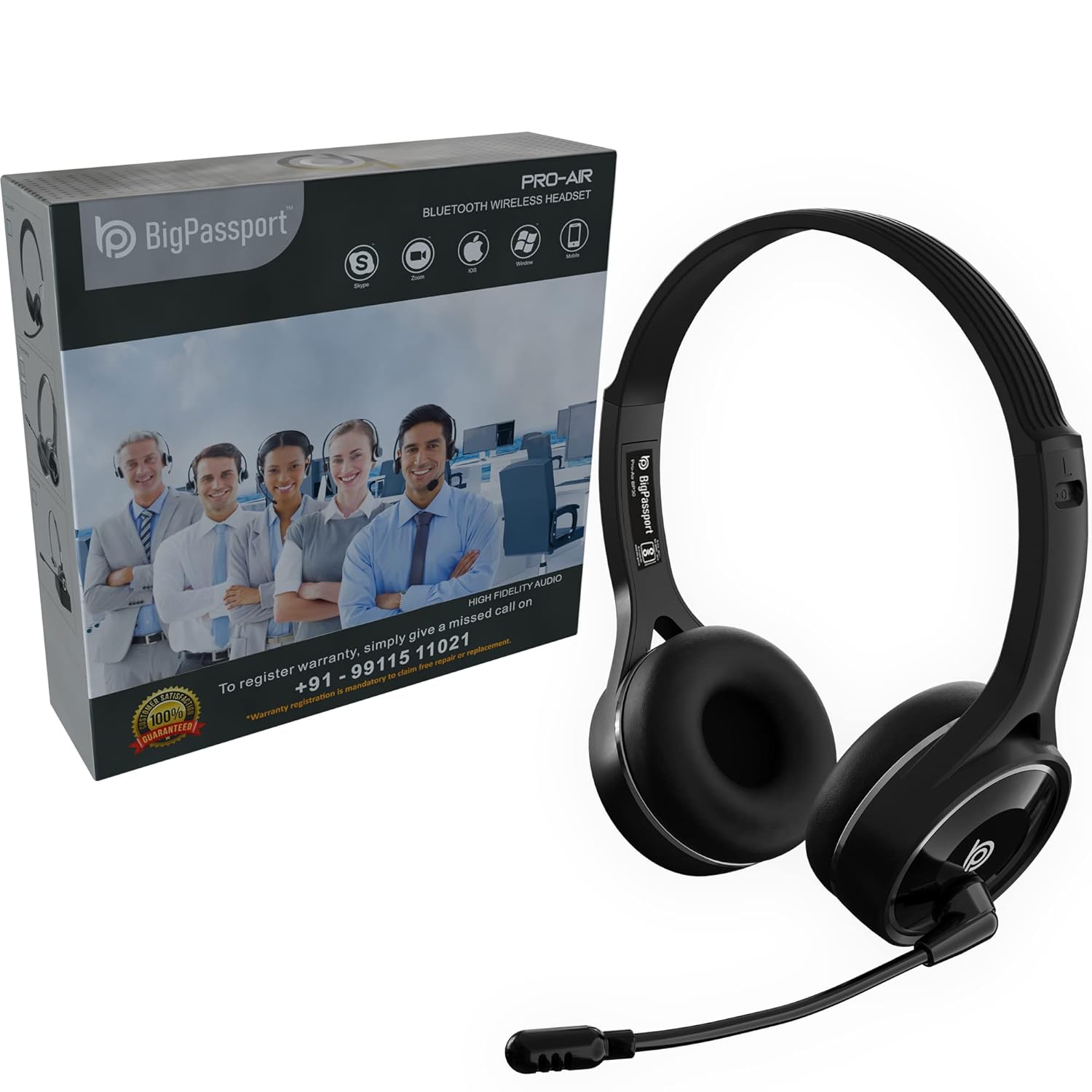 BigPassport Bluetooth Wireless Over-Ear Headset with Mic | Noise-Cancelling Headphones for Skype, Zoom, Online Meetings, Call Center, Office, PC, Laptop – Pro-Air_Bp30 (Black)