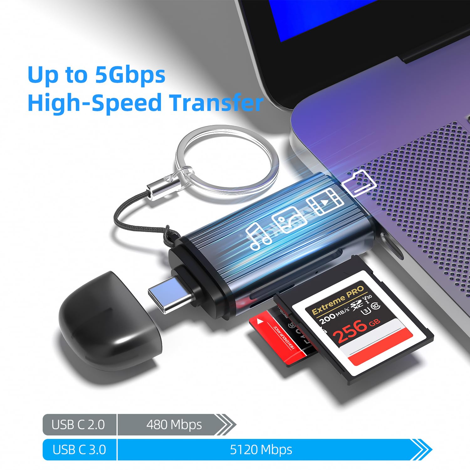 Data transfer rates are subject to the speed of the memory card itself and your computer’s USB ports.A device with USB 2.0 would only run at 480Mbps.A device with USB 3.0 would only run at 5120Mbps.Read UHS-II cards at UHS-I speed.Memory cards shown in images are NOT INCLUDED in the product.Not support iPad, iPhone(lightning. But for iPhone(type c )