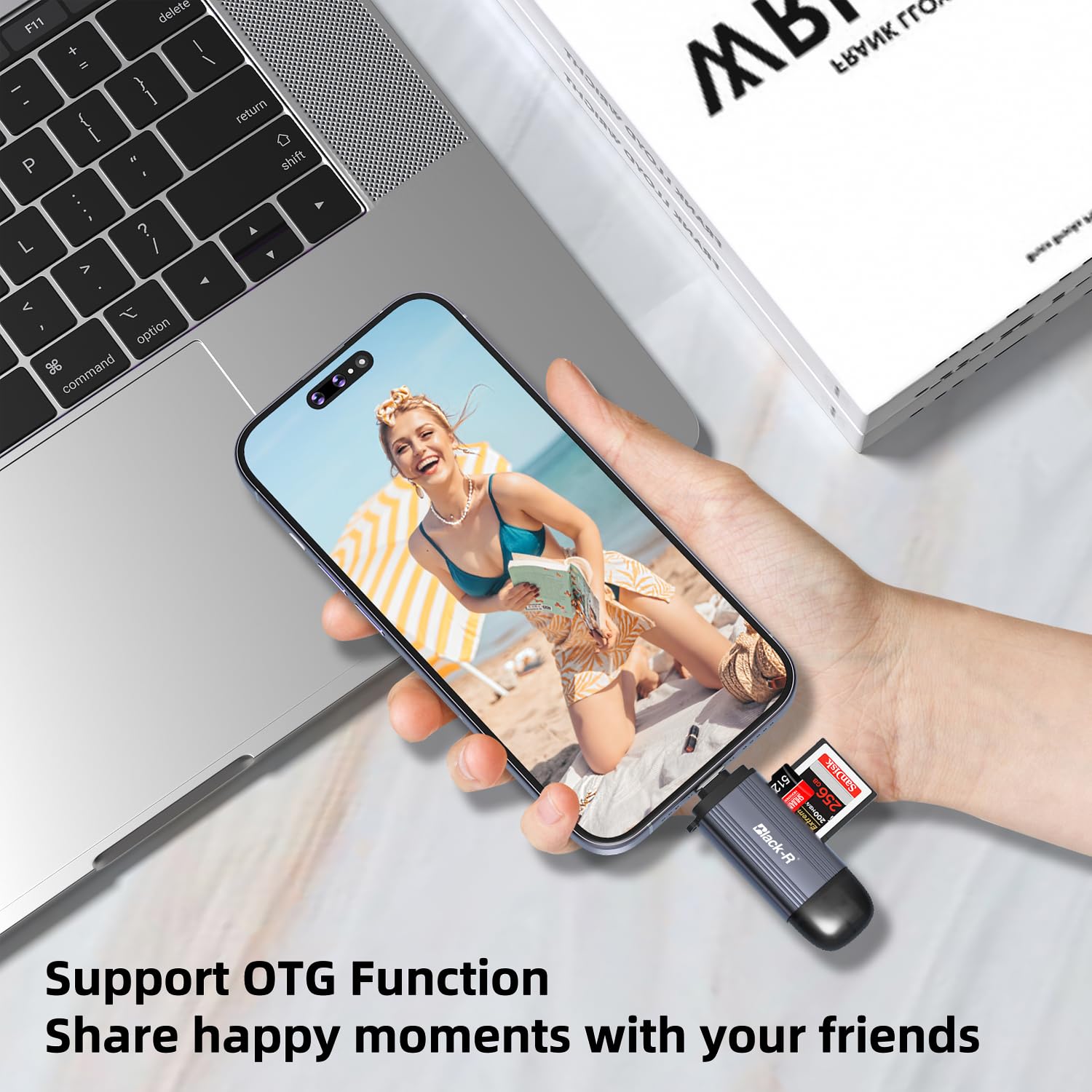 ✔Tablets iPad Pro 2022 / 2021 / 2020 / 2018,iPad Air 2022 / 2020, iPad mini 6 ✔ Laptops MacBook Pro (After 2016), MacBook Air M3 / M2 / M1, MacBook 2017/2016/2015, iMac Pro, iMac (After 2017), Mac mini 2018 Dell XPS 15 / 13, Surface Book 2, Surface Go, Pixelbook, Pixelbook Go (and more) ✔ Phones 𝒊𝑷𝒉𝒐𝒏𝒆 16 Series ( 𝒊𝑷𝒉𝒐𝒏𝒆 16, 𝒊𝑷𝒉𝒐𝒏𝒆 16 Plus / Pro / Pro Max) ( 𝒊𝑷𝒉𝒐𝒏𝒆 15 Series ( 𝒊𝑷𝒉𝒐𝒏𝒆 15, 𝒊𝑷𝒉𝒐𝒏𝒆 15 Plus / Pro / Pro Max), Samsung Galaxy S23, S22 Ultra, S22+, S22, S21, S21 Ultra, S20, S20 Plus, S20 Ultra, S10e / S10 / S10 Plus / S8 / S9 / S8 Plus / S9 Plus / Note 10 / Note 9 / Note 8 Pixel, Pixel 2, Pixel C, Nexus 5X / 6P, HTC 10 / U11 / U12, OnePlus 3 / 5t / 6 / 7 / 8 / 9, Lumia 950 / 950XL, LG G5, V20, Samsung Galaxy Tab S3 Tablet (and more) ✔ Card Compatibility SD, SDHC, SDXC, RS-MMC, MicroSD, MicroSDHC, MicroSDXC from Camera/ Gopro/ Dash Cam/ Surveillance camera/ Baby Monitor/ Digital Camera ✔ Camera Compatibility Hero 6 Black / 5 Session / 5 Black / 4 Silver / 4 Black etc. EOS 700D / 1300D / 100D / 80D / 200D / 750D / 800D / 77D etc. D750 / D3300 / D5300 / D5500 / D7200 / D800 / D600 / D610 / D850 / D3100 / D3200 / D3400 etc. Sony DSC-RX100 / DSC-WX350 / DSC-HX60B / DSC-HX400V / DSC-W830 / ILCE-6000LB / ILCE-5000LB / DSC-W810B etc. ✔ System Compatibility Windows 11/ 10 / 8.1 / 8 / 7 / XP / Vista, macOS, Linux, Chrome OS, etc. ✘ Imcompatible (✘) Not Compatible With lightning, iPad, iPhone(LIGHTNING), Sim Card, Nintenxx Switch. **Note 1 If you are not sure, please feel free to let us know, we are very glad to help you to check. **Note 2 Data transfer rates are subject to the speed of the memory card itself and your computer’s USB ports. **Note 3 If you fail to transfer large files, please try to format the SD/MicroSD cards to the right format for your devices. Recommend using MS-DOS (FAT) for 32GB or smaller cards, and exFAT for 64GB cards. **Note 4 It is recommended that the case be removed for use. If the case is too tightly wrapped, the product may not be fully inserted into the device. Q&A-1 Could you find the SD card via “FILES”? * Insert the SD card into the reader > plug the device card reader into the iPhone(TYPE-C) > click on the “FILES” app > click on iCloud Drive’s “Browse” > click on Browse’s “Your SD card name” > Now you can view your files from your SD card on “Your SD card name” Q&A-2 Can’t find transfer between Android phone/tablet and SD Card? ** Please make sure your device OTG function enabled, and find the SD card in the “settings”. For detailed steps, please find on your device manual.