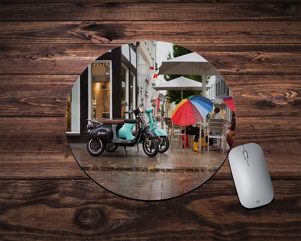 BLISSart Mouse Pad Non-Slip Rubber Mousepad for Laptops Gaming Computer PC HD Printed Round Mousepads- Friends All Together in rain (8 Inches)