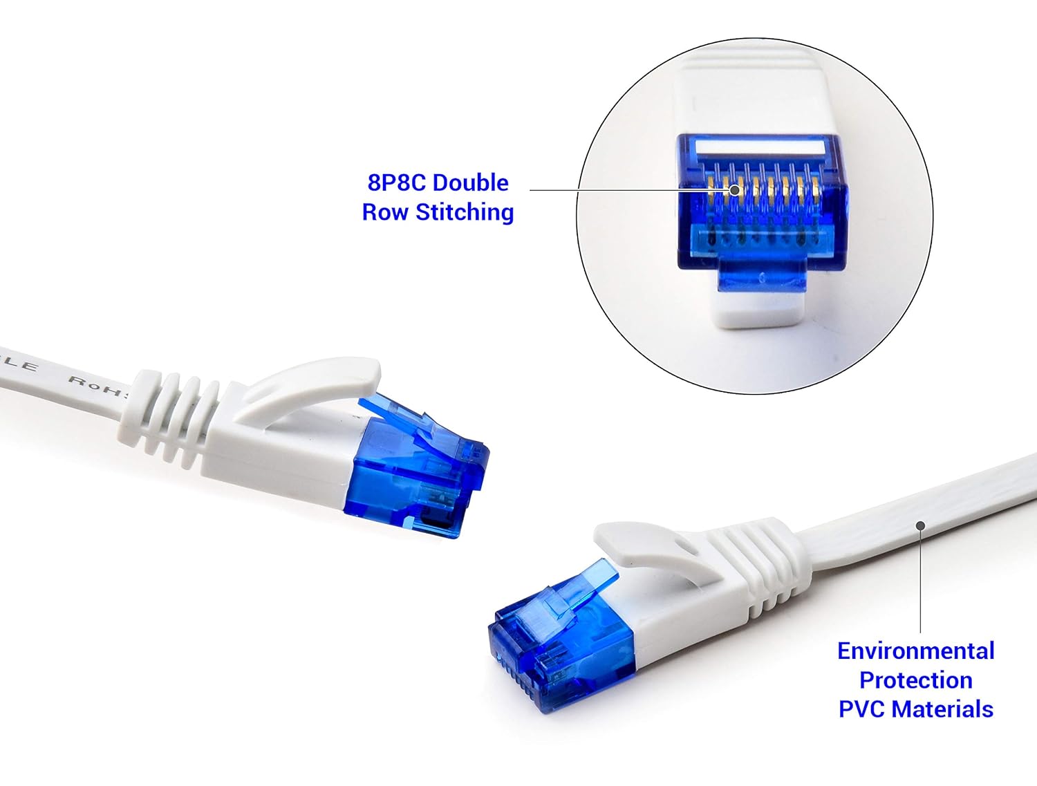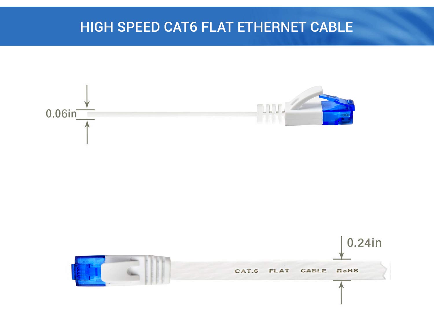 BlueRigger Cat6 Flat Ethernet Cable with 10Gbps High Speed, 100% Pure Copper Wire for Networks, PC, Switch, Router and Modem compatible for Gaming PC Laptop – 6 Feet (2 Meters)