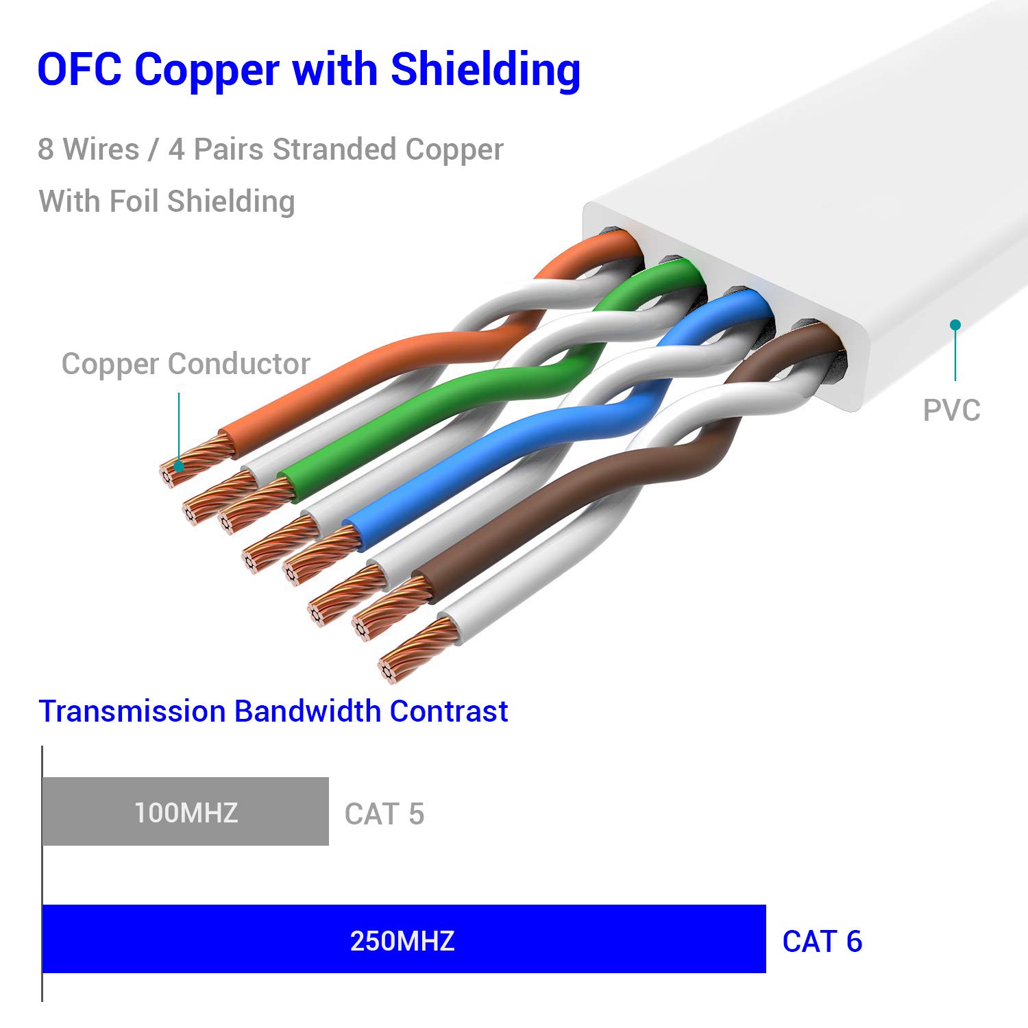 LIGHTING FAST CONNECTIONS AND NETWORK PERFORMANCE: With up to 1Gbps at 250 Mhz, full-duplex mode, and oxygen-free bare copper wires, you can communicate between devices super-fast with minimal interference.
