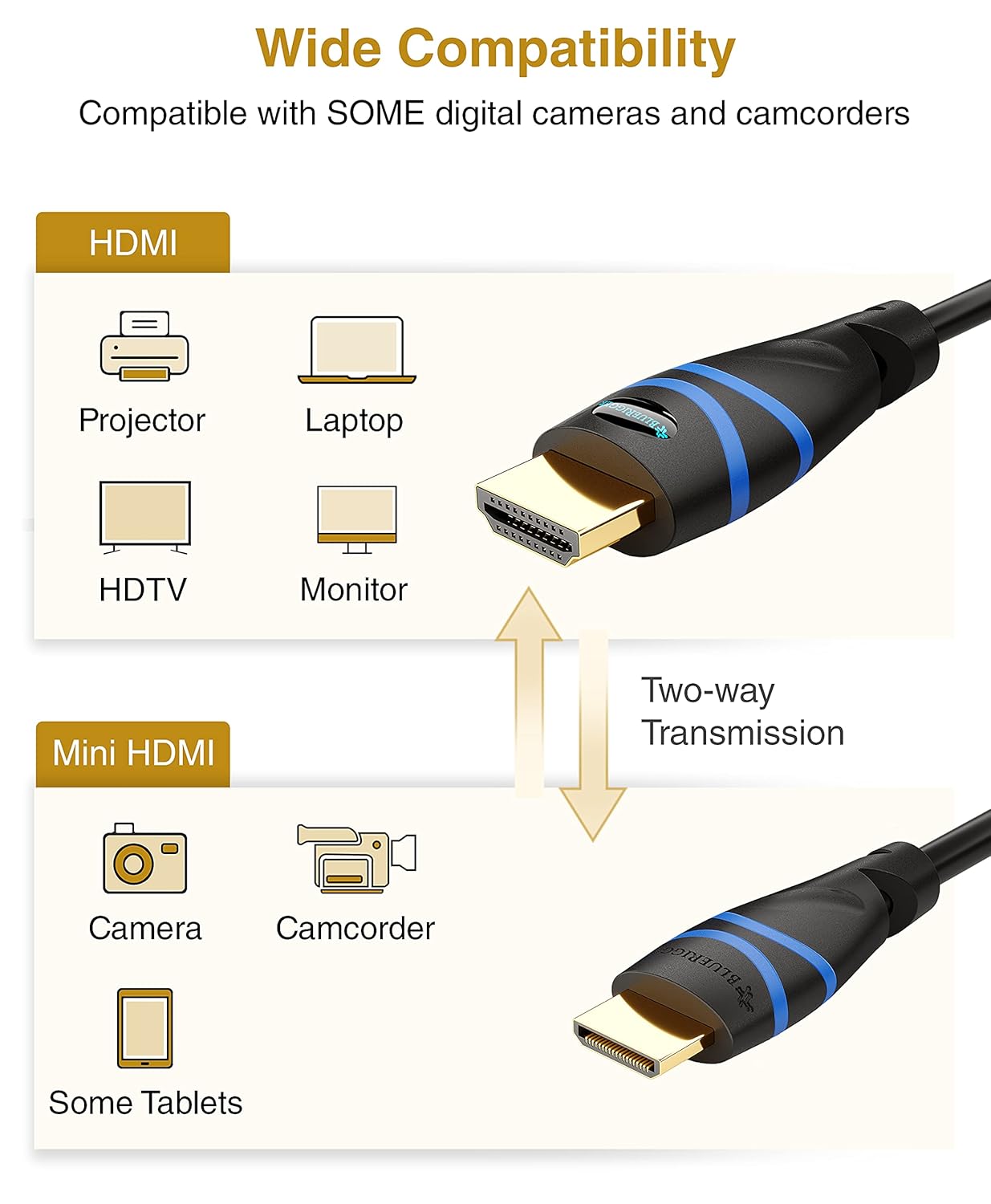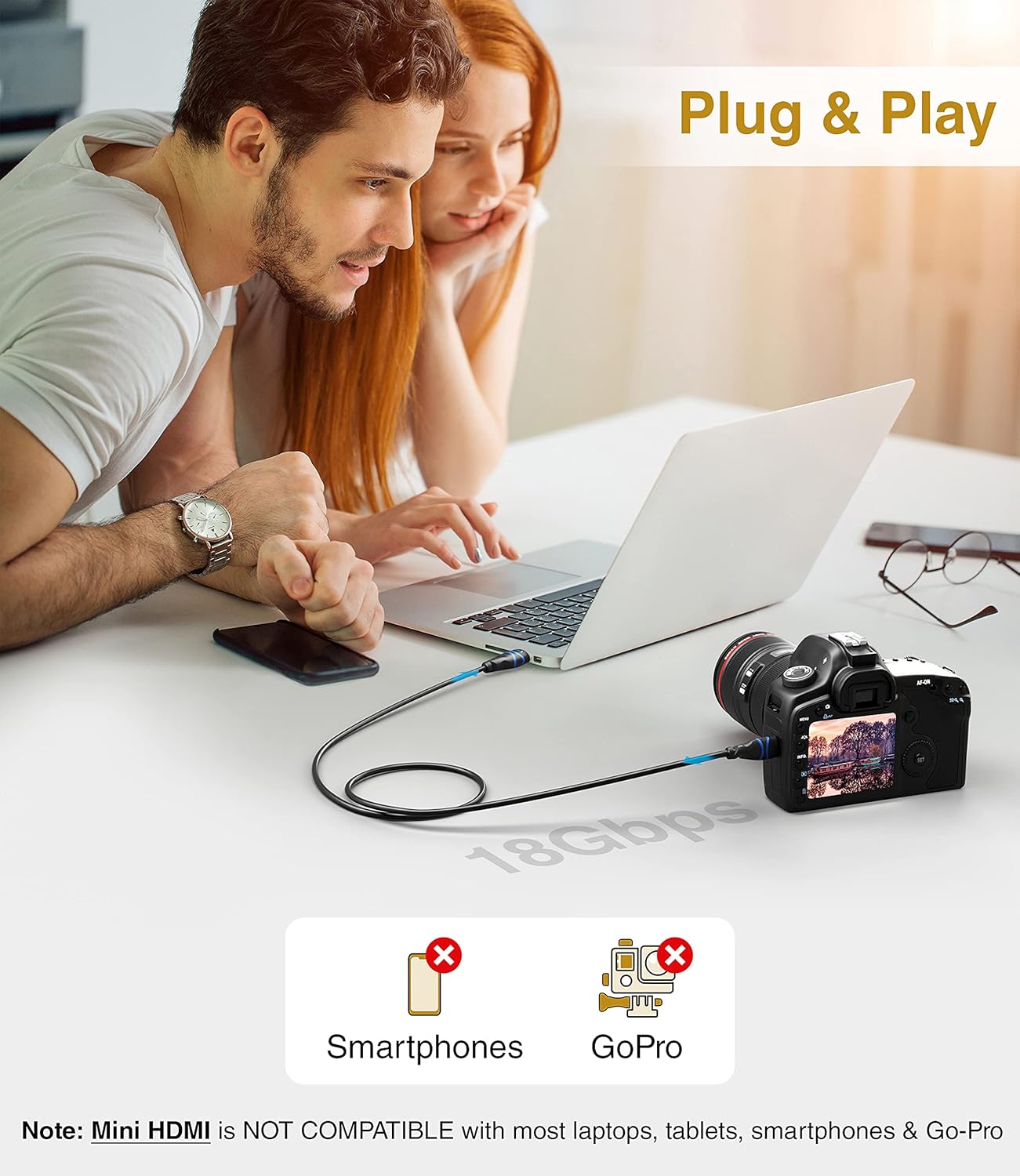 PERFECT CAMERA COMPANION Ideal for connecting Mini HDMI devices such as Camera, Camcorder, Tablet, Raspberry PI Zero & more to a HDTV, Projector, Monitor with HDMI port18Gbps Bandwidth