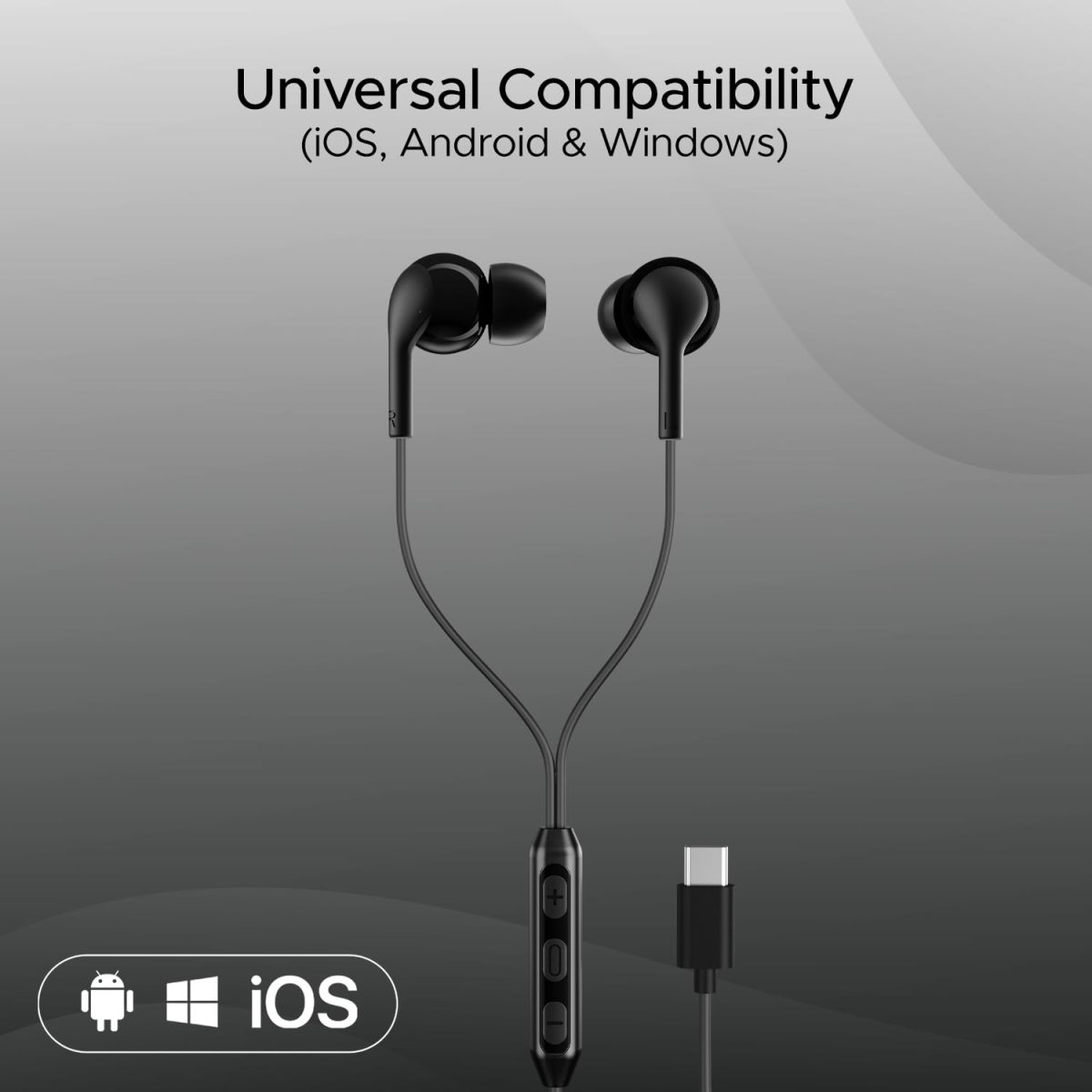 boAt Bassheads 100 C Wired Headphones Earphones with Type-C Jack, in-Line Microphone, in Ear, 10Mm Drivers, Signature Sound, Integrated Controls & Multi-Os Compatibility (Black)
