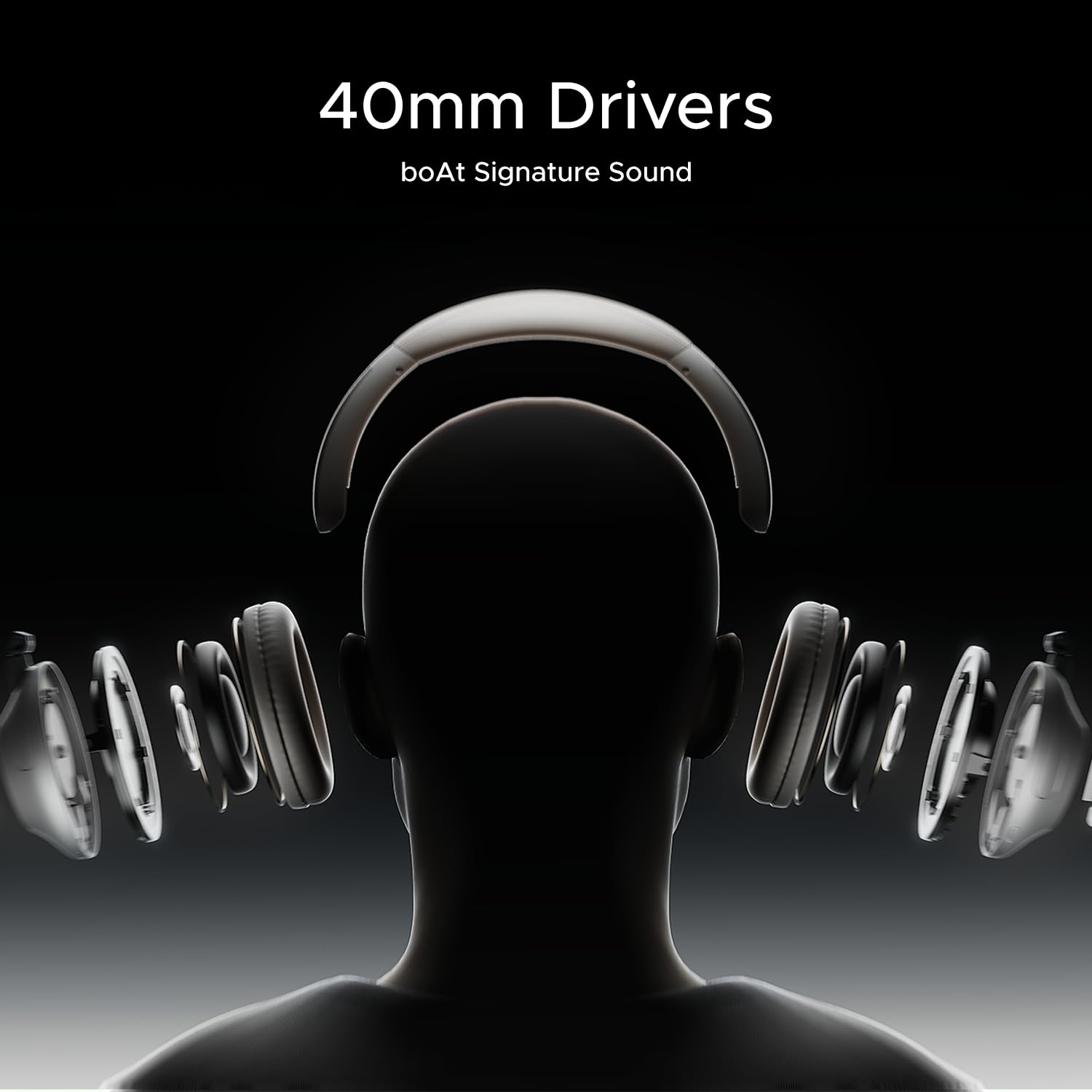 40mm Drivers: Listen to thumping audio with the 40mm drivers in these headphones. Bass-rich boAt Signature Sound from the dual drivers is bound to amplify your listening experience to the next level.