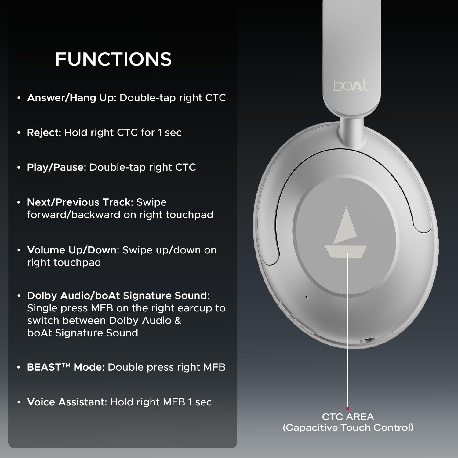 boAt New Launch Rockerz 650 Pro,Touch/Swipe Controls,Dolby Audio,80Hrs Battery,2Mics Enx,Fast Charge,App Support,Dual Pair,Bluetooth Headphones,Over Ear Wireless Headphone with Mic (Silver Frost)