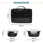 Borosil Kube Black Borosilicate Glass Lunchbox with Bag | 4 pc Container Set (320ml Square x 2 + 240ml Round x 2) | Microwave & Dishwasher Safe, Leakproof | Tiffin for Office, School, College