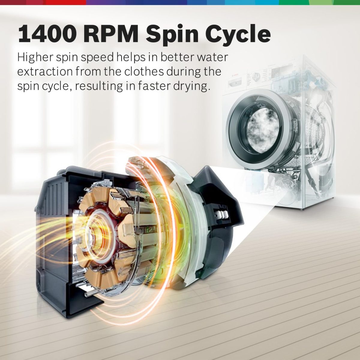Fully-automatic front load washing machine with Hygenic Wash: Best Wash Quality, Energy and Water efficient. Capacity 8 kg: Suitable for large families. Energy Rating: 5 Star – Best in class efficiency, ensuring reduced electricity consumption; Annual energy consumption of 2300 kWh. Warranty: 2 Years warranty on Product, 12 Years warranty on Motor. 1400 RPM : Higher spin speed helps in better water extraction from the clothes during the spin cycle, resulting in faster drying; copper winding for long-lasting. Wash Programs: 15 wash program – Quick 15/30 min, Anti bacteria, Freshen up, Shirts, Jeans/dark wash, Sportswear, Spin/drain, Rinse, Cotton, Cotton 60° Label, Synthetics, Mix load, Delicates/silk, Woolen, Drum descale. Drum / Pulsator type and Drum size| Body: Rust- resistant stainless steel; Door Material: Toughened glass| Motor material & type: Eco Silence Drive brushless, energy-efficient motor . Key Performance Features: Seamless Digital display, In-built Heater for Hot wash, Single Rinse, SpeedPerfect, Spin speed reduction, sports, stain selection, Start/Reload, Temperature selection, suitable for all water types, hard water, soft water, Additional features – Allergy Plus, AntiTangle, Anti vibration side panels, Foam control, Balance control, Multiple water protection, Cold Wash Option, Anti Rodent. Brand Warranty can be availed using amazon invoice. User manual can be accessed from brand website