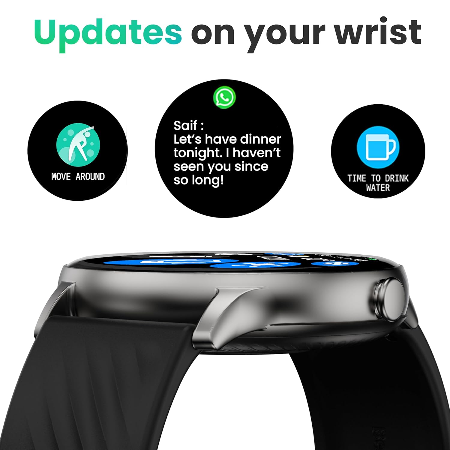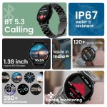 Discover style and functionality combined in the Dire Smartwatch, available in Black (Silicon Strap), Jet Black (Stainless Steel), Silver (Stainless Steel), and Blue (Silicon Strap). Featuring a stunning 1.38” round HD screen with 500 nits brightness and a sleek 2.5D curved glass, it offers unmatched clarity and sophistication. Stay on top of your health with 24×7 Heart Rate Monitoring, SpO2 Tracking, Blood Pressure Monitoring, Menstrual Cycle Tracking, and Stress and Sleep Analysis, along with hydration and sedentary reminders to keep you active and refreshed. Enjoy seamless connectivity with Bluetooth 5.3 calling, a dedicated speaker and mic, and AI voice assistants like Siri and Google Assistant for smarter productivity. With 120+ sports modes, 250+ customizable watch faces, camera controls, mini-games, and IP67 water resistance, the Dire Smartwatch adapts to your every need, making it the ultimate companion for fitness, productivity, and style.