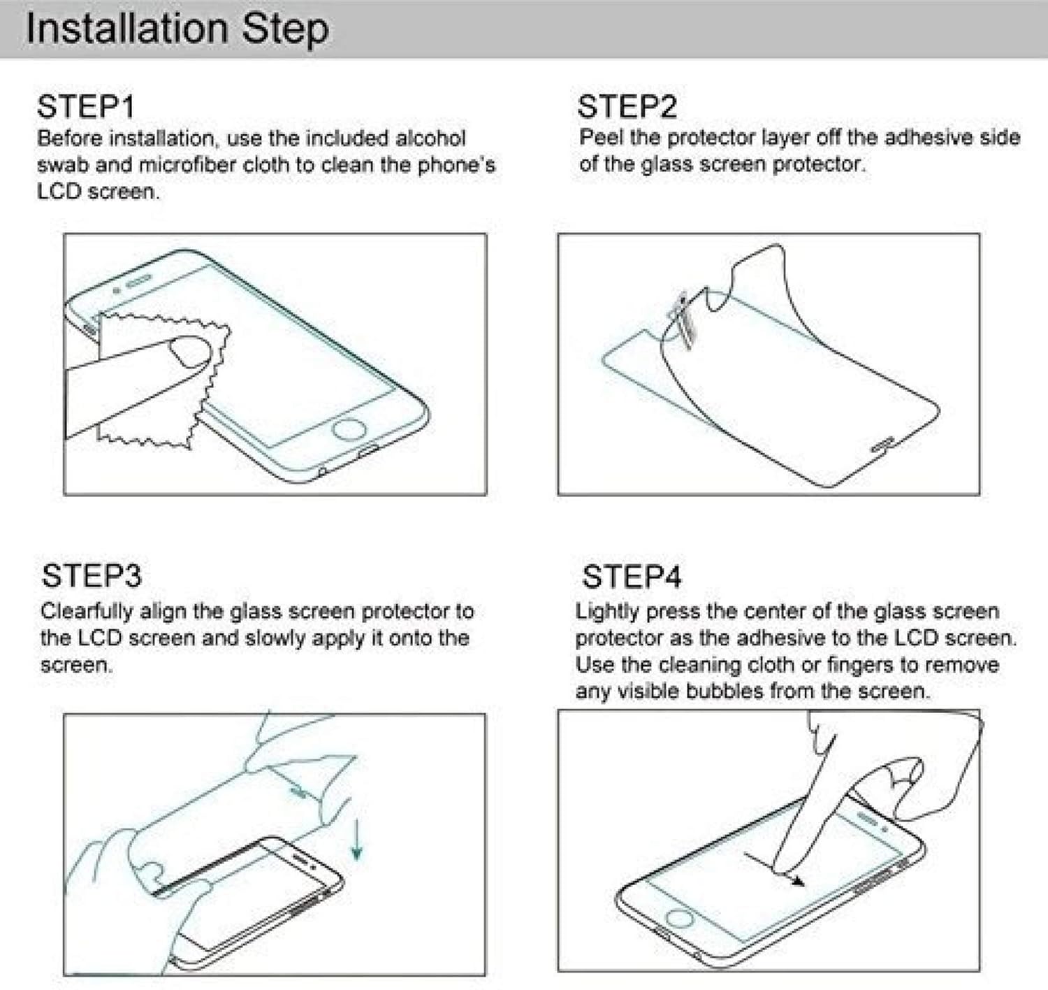 Hydrophobic and oleophobic clear layers work as the final coating to protect your screen from fingerprints, liquid residue, and other stains, keeping your phone pristine all day long!It’s super easy to install! Comes with all the tools you need to assist with the installation process.