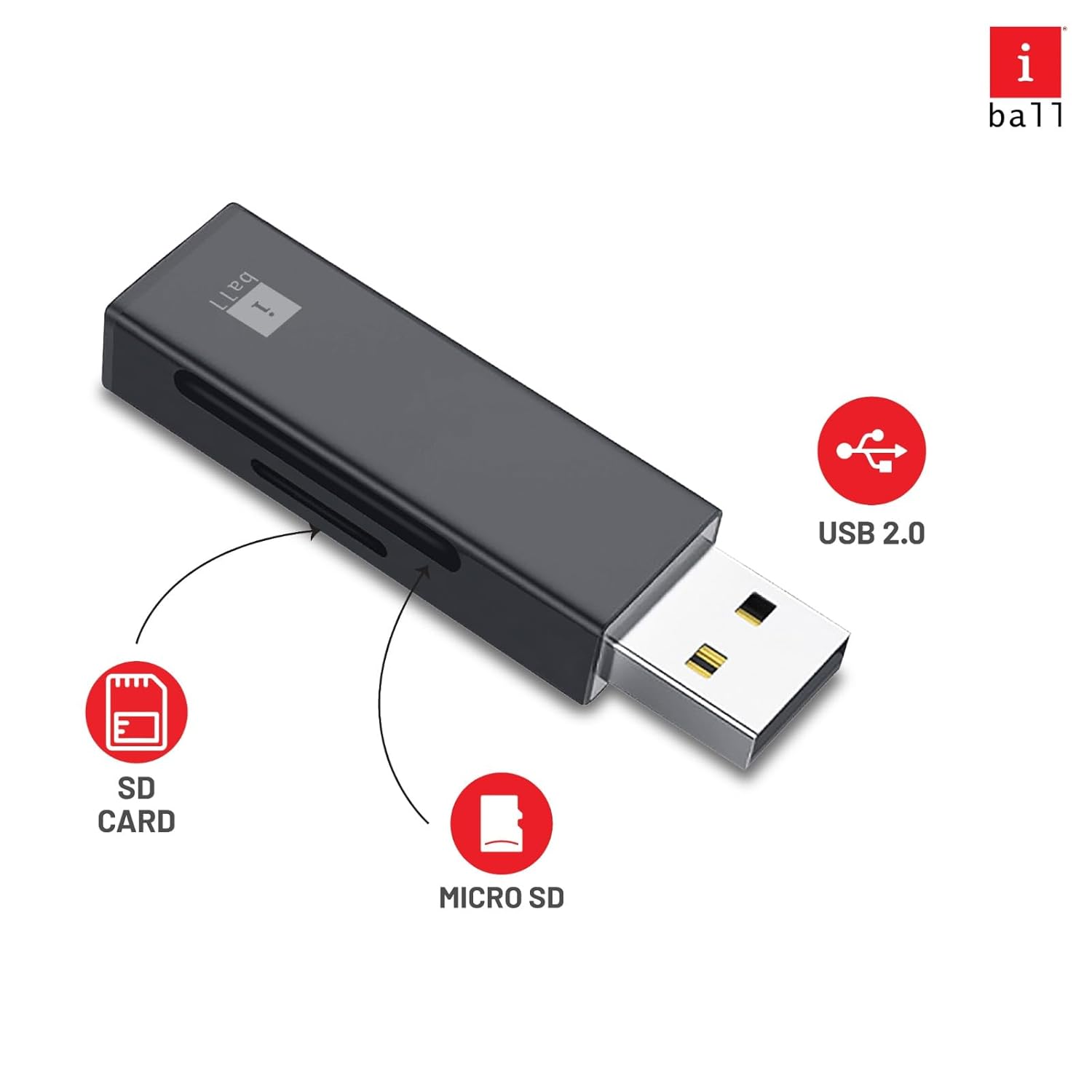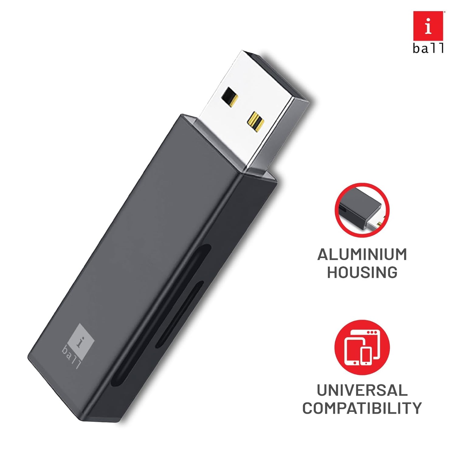 iBall Bridge CR202 Card Reader is a compact device designed with an aluminum housing case, ensuring excellent heat dissipation while providing an elegant appearance.