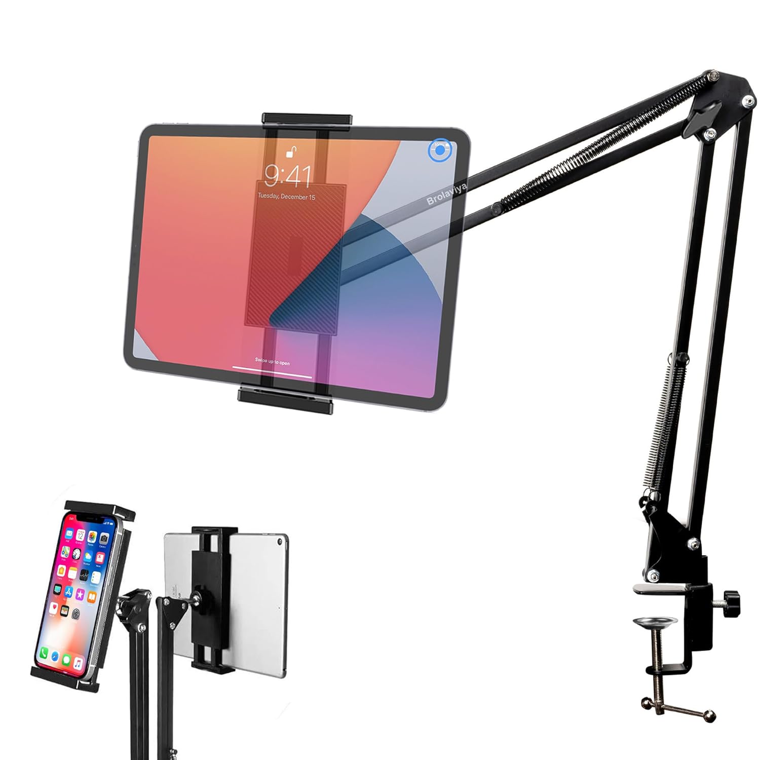 New Design: Brolaviya upgraded bracket is compatible with tablets and phones screen display between 4 inches – 12.9 inches which length or width within the range from 4.7” to 9.8” inch. Product length is 29.5 inch in total.