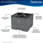In the Box: Brother HL-L6200DW Business Laser Printer, (1) High-yield Toner Cartridge (yields approx. 8,000 Pages), (1) DR820 Drum Unit (yields approx. 30,000 Pages), Installation CD-ROM, AC Power Cord, Quick Setup Guide.