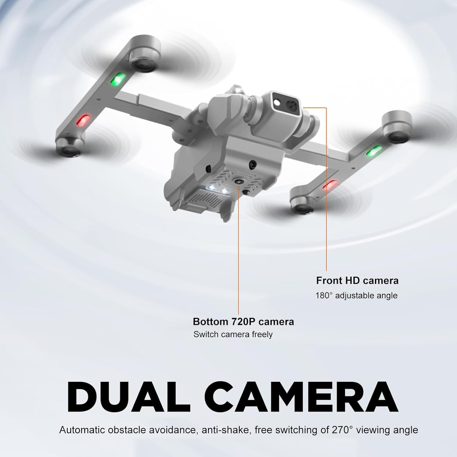 Reliable Security Drone: It can prevent damage to the propeller and also prevent personal injury. It is a very user-friendly feature for beginners. 90° Adjustable 90° manually adjustable camera lens to provide a wider field of view, allowing you to see the world from a bird’s eye view. Emergency Stop function the drone loses power and descends vertically. In the event of excessive wind or loss of control, drone loss can be avoided.Full functioning: Drone Foldable WIFI 4K Triple Camera Infrared Obstacle Avoidance Gesture Controls For Photography Wi-Fi Camera Remote Easy Control Flips Bounce Mode, One Click Smooth Landing. App One Key Headless Mode functionality Features: App-Controlled, FPV Capable, Integrated Camera, Obstacle Avoidance, Wi-Fi Power Source: Electric Video Capture Resolution: 1080p FHD Camera Mount Type: 2-axis Operator Skill Level: Beginner, Intermediate Indoor/Outdoor Use: Indoor-Outdoor State of Assembly: Ready-to-Go Product Weight: 188g