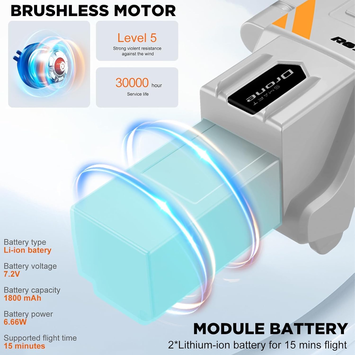 ★【Brushless Motor, Highly Stable, Optical Flow Positioning】Brushless remote control drone, in contrast to brushed models, boast extended lifespans and lower power consumption. The fan blades can attain higher speeds, and a built-in altitude maintenance system ensures stable hovering at desired heights. Enhanced wind resistance is achieved through optical flow ground detection.