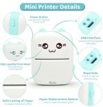 STYLISH CARTOON BLUETOOTH PRINTER: Our bluetooth thermal printer is USB charing, built in 1200mAh battery, can be powered by powerbank or connecting any adapter. Perfect for labeling file folders, food storage, organizing clothes, food containters, jars, bottles, etc. Cute cartoon design of also adds a touch stylish to this printer, making it a nice gift for students, kids, and anyone who values the functionality and fashion.