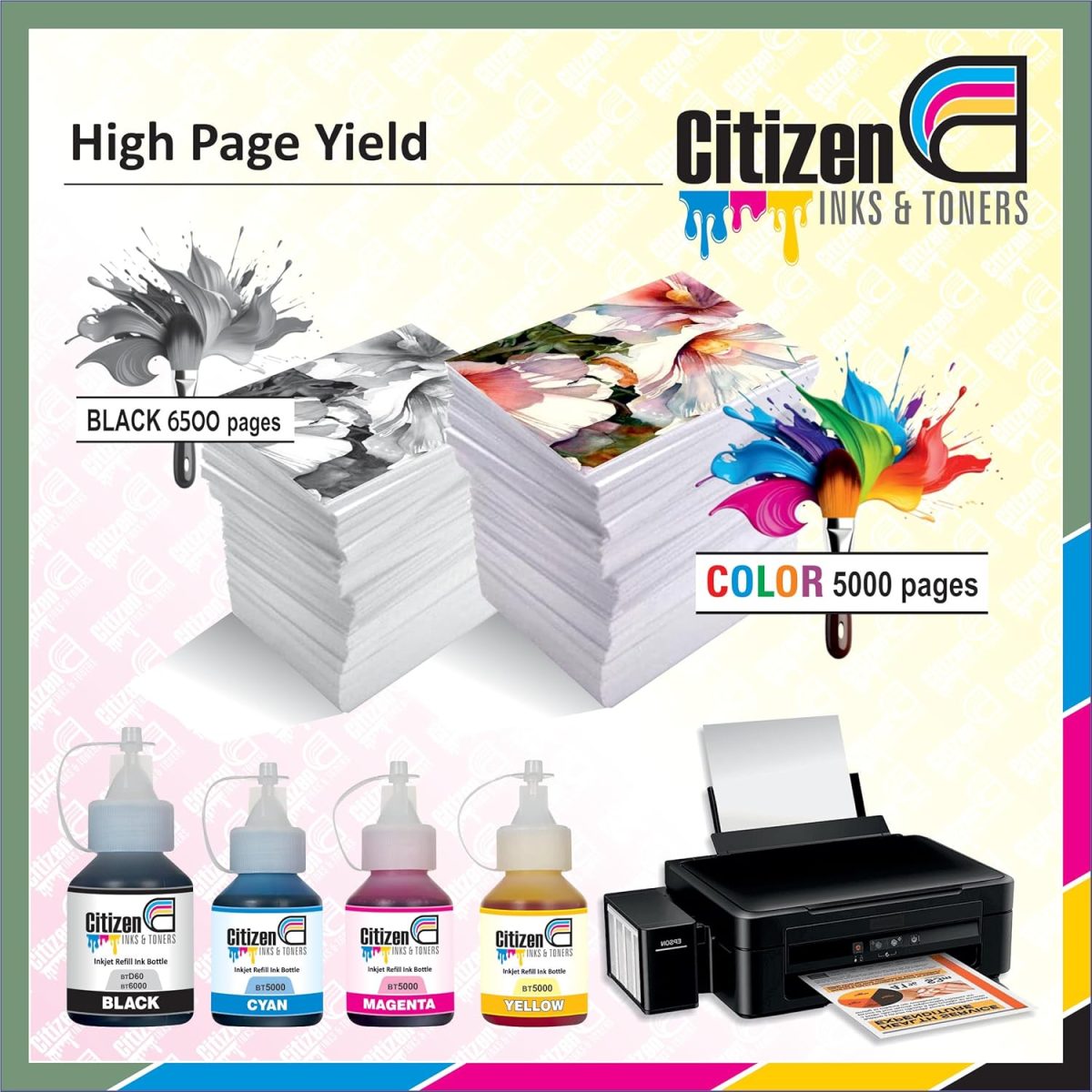 BT6000 / BT5000 Refill Ink Bottle | Compatible with Brother Printers – DCP-T220, DCP-T226, DCP-T420W, DCP-T426W, DCP-T520W, DCP-T525W | High Print Quality | Leak-Proof (4 Color Set : B/Y/C/M)