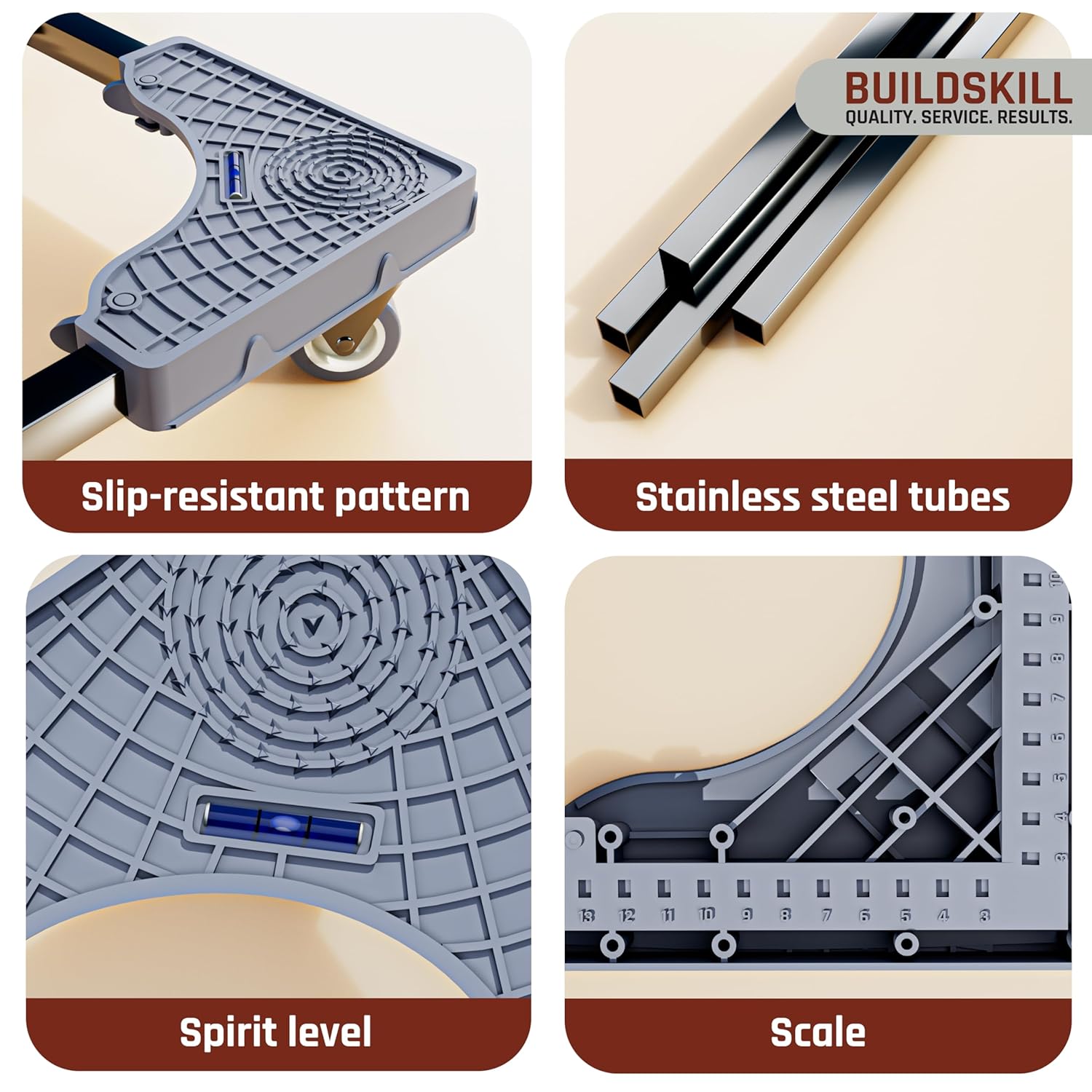 The Stainless steel tubes and heavy-duty plastic body make the Buildskill trolley rust-resistant.