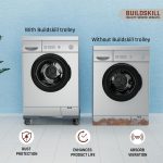 Customizable Fit Washing Machine Trolley – The Buildskill washing machine stand adjustable size is designed with a universal base that fits appliances from 40cm x 40cm up to 60cm x 62cm, with a buckle lock mechanism that locks the size according to the appliance size and keeps the appliance firmly in place. Perfect for top load washing machine stand, front load washing machine stand 7kg, washing machine stand 8kg, etc.