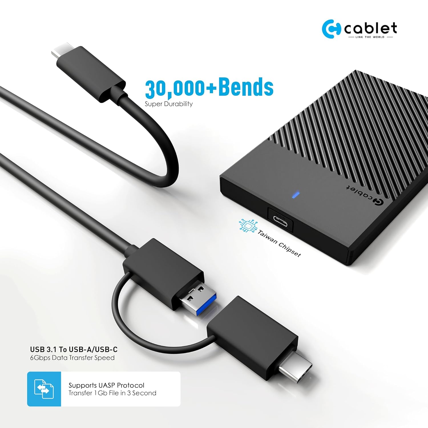 Cablet 2.5 Inch SATA Type C 3.1 HDD/SSD 6GBPS Speed Portable External Enclosure, 7mm and 9.5mm, Tool-Free Design, Supports UASP Max 6TB (Type C)