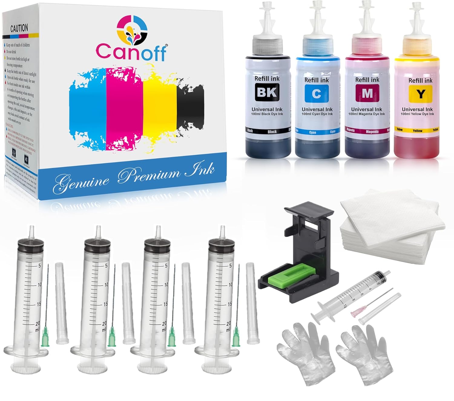 Refill ink is perfect for hassle-free refilling & offers sharp, clear, smudge free & long lasting prints. It has been specially formulated with high quality chemicals to offer excellent colours and vivid printing performance. It is perfect for color and monochrome prints. The ink refill by “CANOFF” can be Easily Refilled. Refilling instructions are provided with the pack