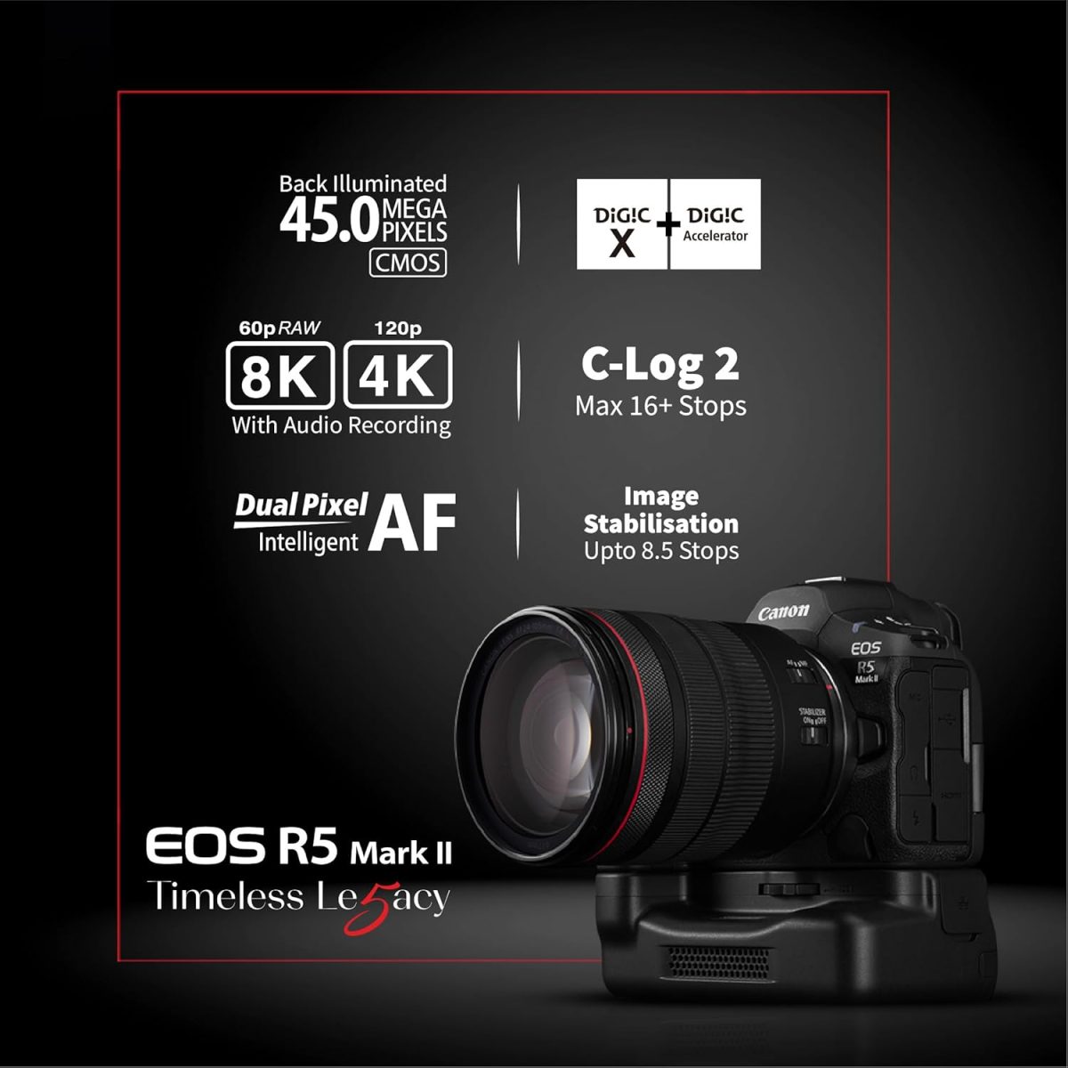Canon EOS R5 Mark II 45MP Full-Frame Mirrorless Camera Body Only (8K RAW & 4K 120p Video) – Black