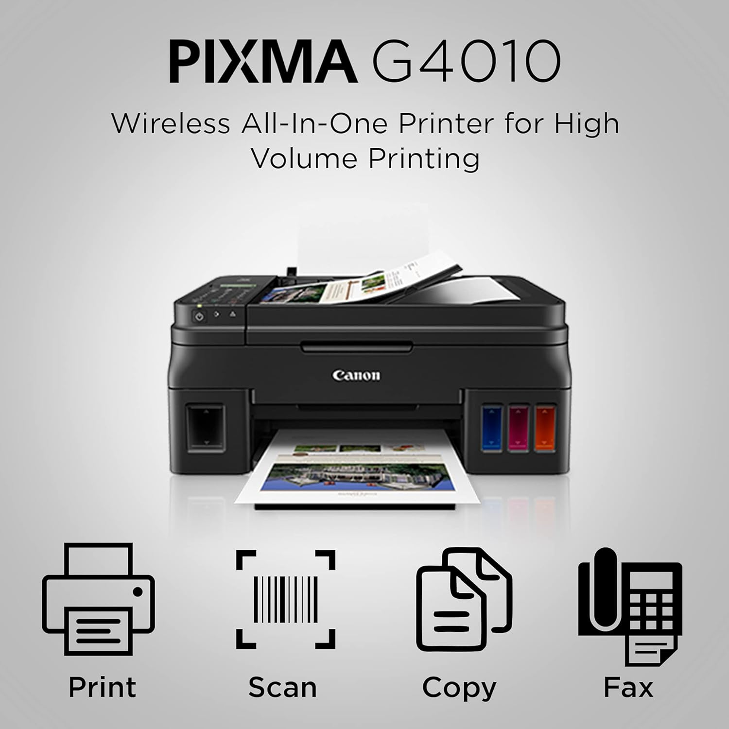 Printer Type – Ink Tank, Functionality – All-in-One (Print, Scan, Copy, Fax) with ADF , Printer Output – Color Connectivity – Wi-Fi, USB, Apple AirPrint,Mopria, Google Cloud Print, Canon SELPHY App ; Compatibility:Windows 10, Windows 8.1, Windows 7 SP1, Mac OS X v10.10.5 ~ v10.11, Mac OS v10.12 2 line LCD diplay on printer(mono) Pages per minute – 8.8 ipm (Black), 5 ipm (Colour), Cost per page – 9 paise (Black & White), 32 paise (Colour) – As per ISO standards Ideal usage – Home and Small office, Regular / Heavy usage (more than 300 pages per month) Page size supported – 4.0″x6.0″ till A4 / Letter / Legal / A5 / B5 ; Duplex Print – No ; Print resolution – 4800 x 1200 dpi Compatible Ink Bottle – GI-790 (BK), GI-790 (Cyan, Magenta, Yellow);Page yield – 6000 pgs (BK), 7000 pgs (color) – As per ISO standards; 1 set of all 4 ink bottles inside the box Warranty – 1 year onsite warranty from the date of purchase.Use only original Canon ink. Using counterfeit ink will harm your printer as well as render your warranty void