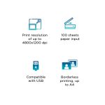 Printer type: Inkjet ; Functions: Print only ; Printer output: Colour ; Connectivity:USB 2.0 ; Scanner: No