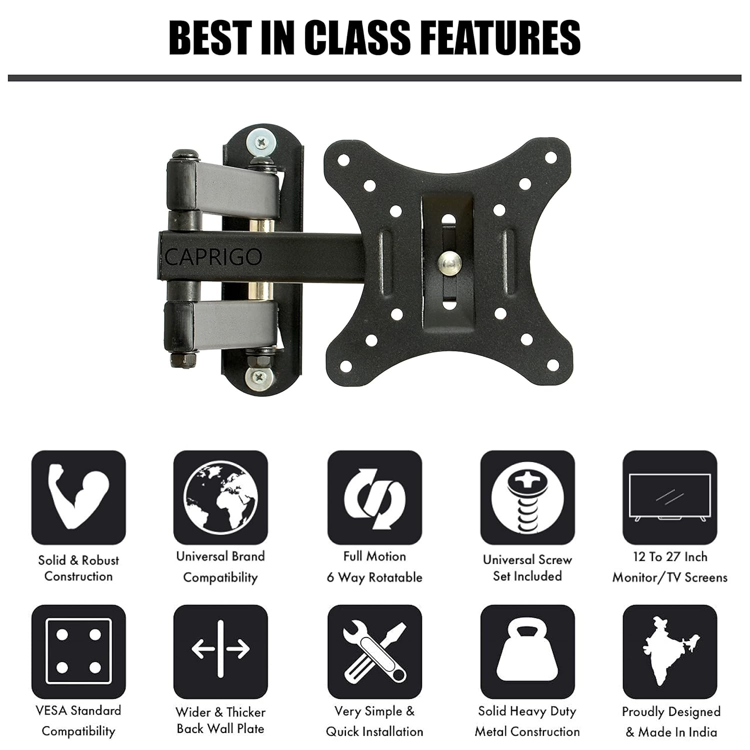 Caprigo Heavy Duty TV Wall Mount Stand for 12 to 27 inches LED/LCD/Monitor Screen’s, Full Motion Rotatable Universal TV & Monitor Wall Mount Bracket with Swivel & Tilt Adjustments (M418)
