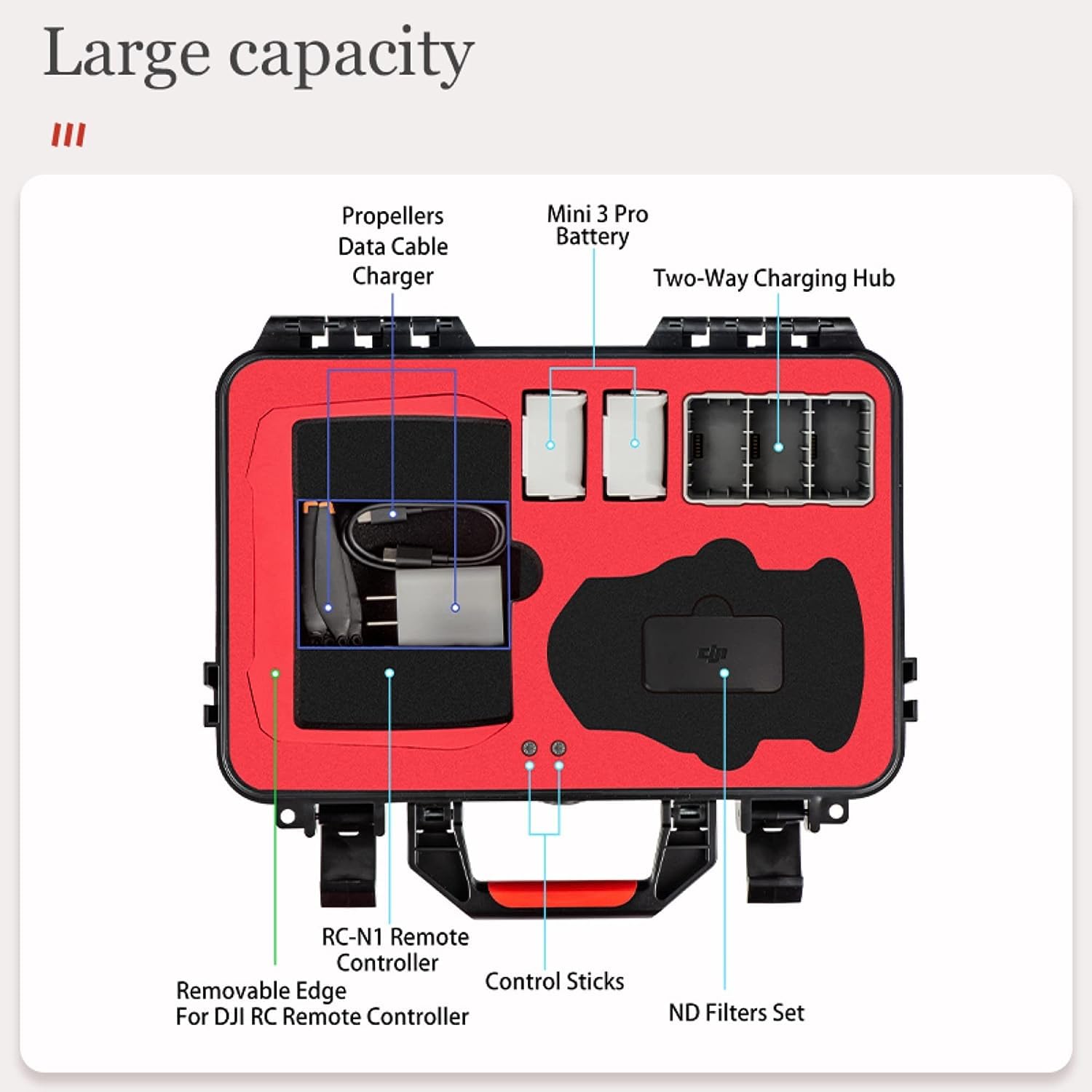 It is specially designed for Dajiang DJI Mini 3 / mavic Mini 3 pro / Mini 3 Combo / Mini 3 DJI RC combo / Go Pro .Large capacity : Fashionable appearance – small volume but large capacity. At the same time, it can also accommodate aircraft and a full set of accessories;